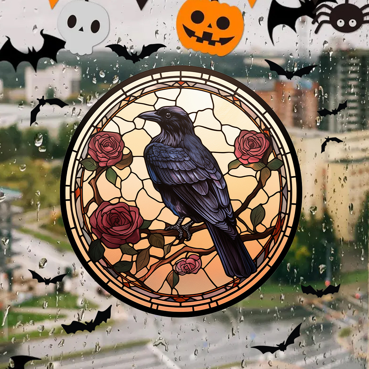 할로윈 바로크 까마귀 유리 정전기 스티커 까마귀 축제 파티 자체 접착 장식 스티커 BR0690C스토어 가기