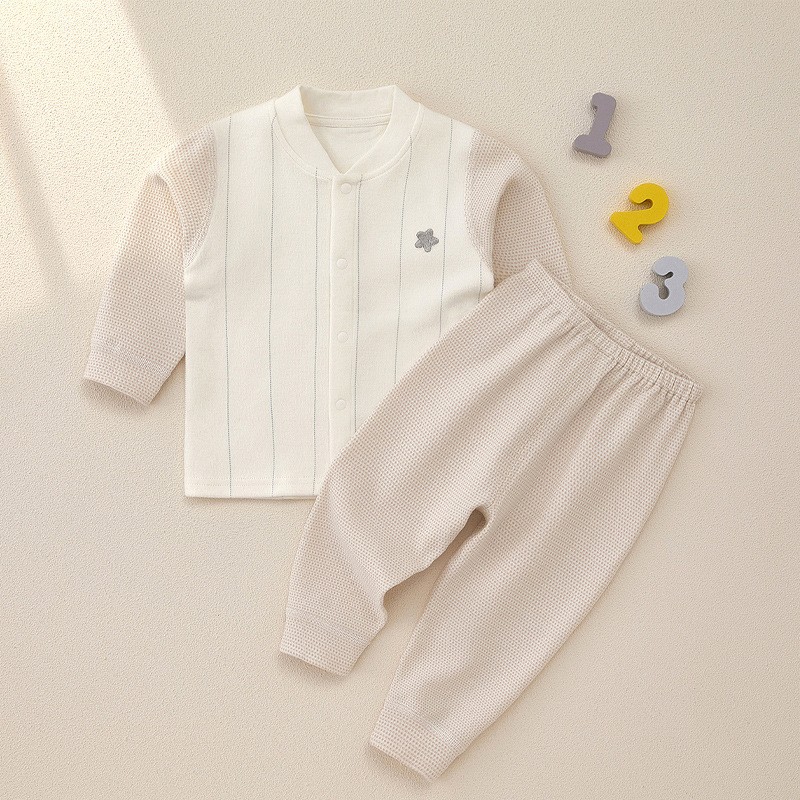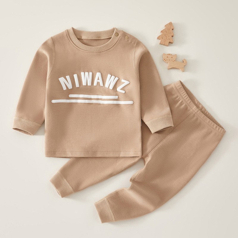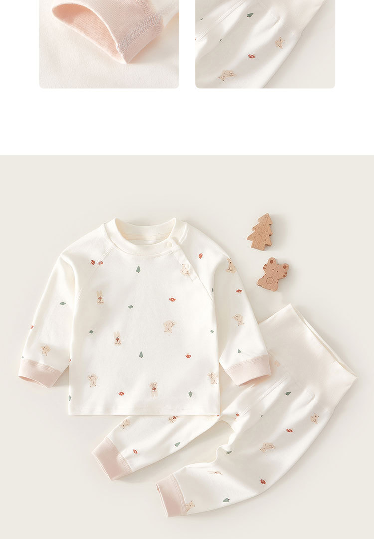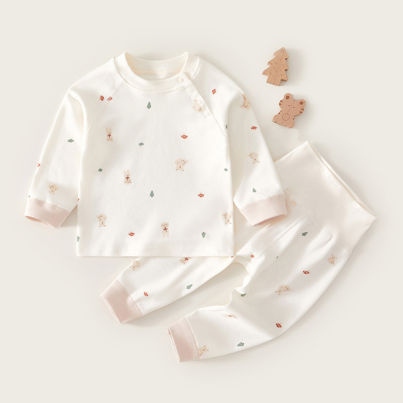 가을과 겨울 아기의 가을 옷과 바지 세트 순면 뼈없는 어린이 속옷 높은 허리 소년과 소녀 잠옷 두꺼운 따뜻한 옷