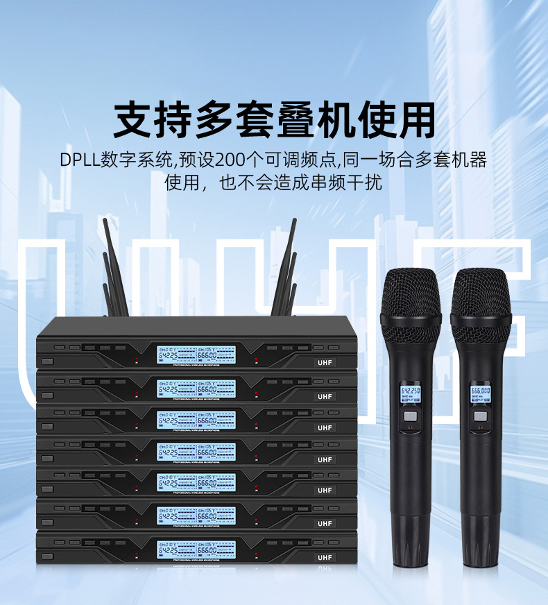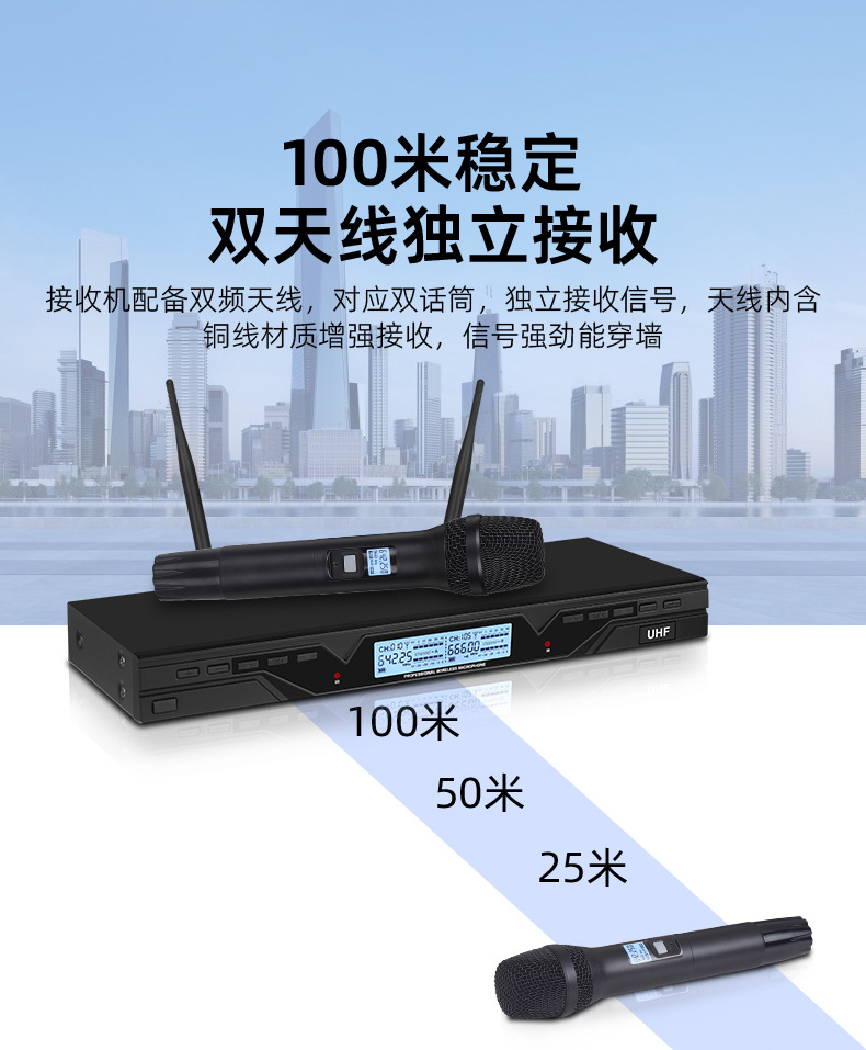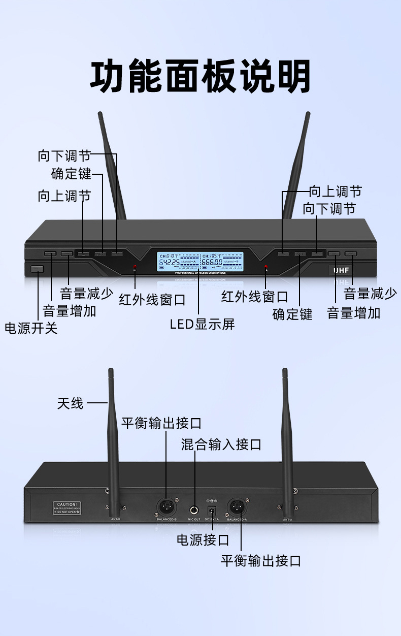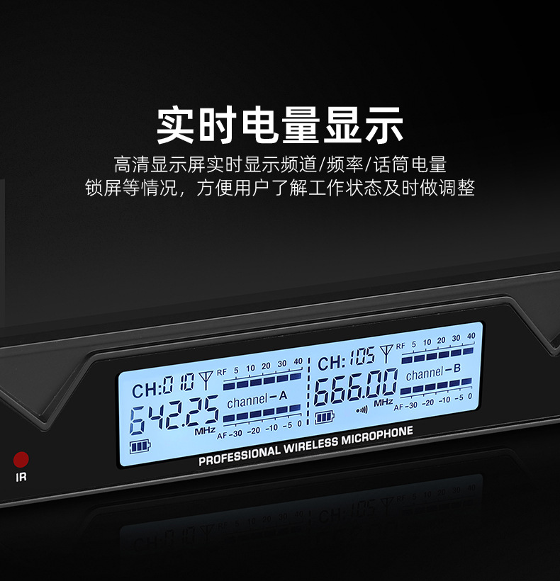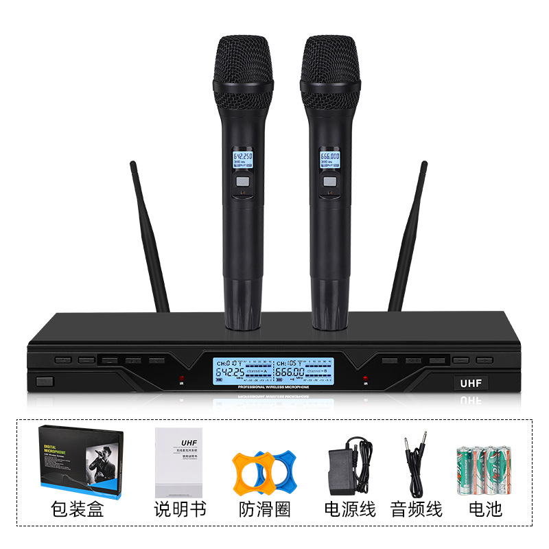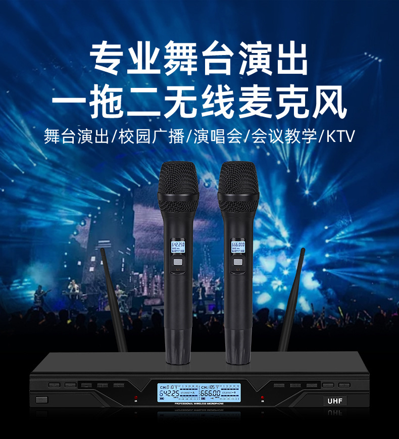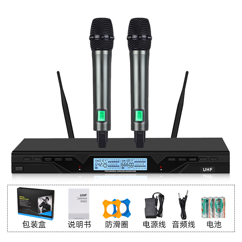 금속 무선 마이크 1 대 2 U 세그먼트 조정 주파수 동적 코일 유형 K 엔터테인먼트 성능 LCD 전문 마이크스토어 가기