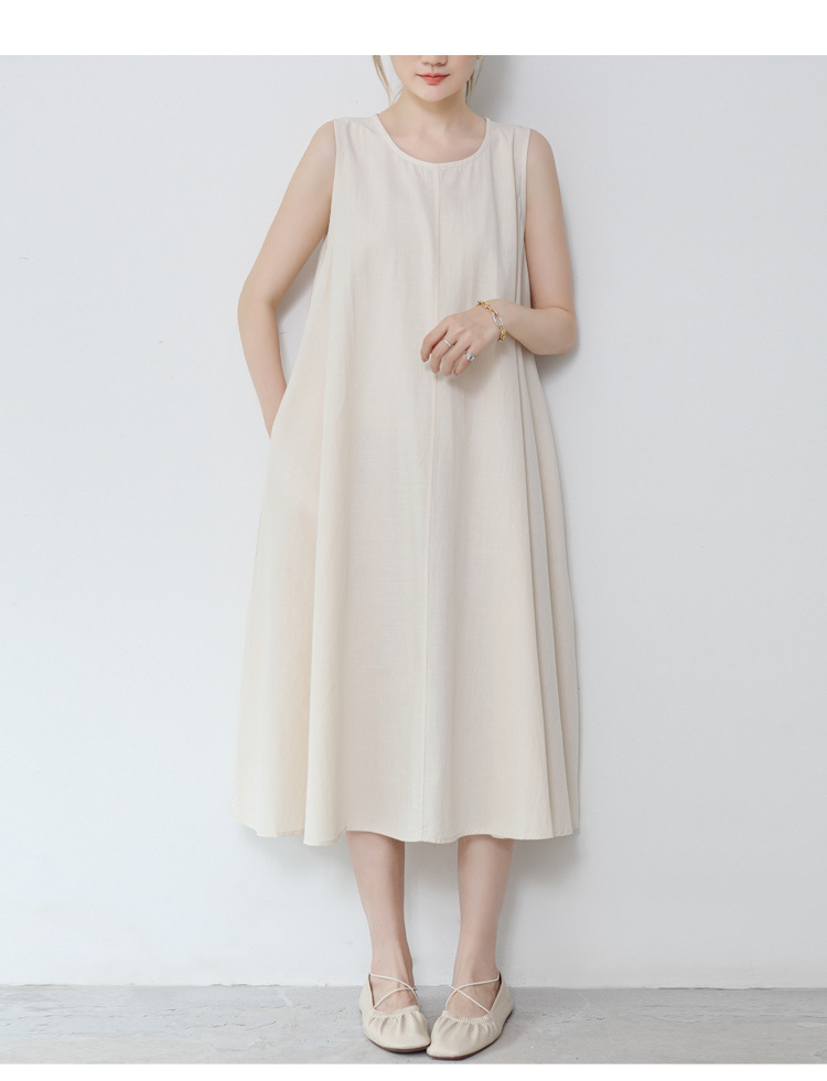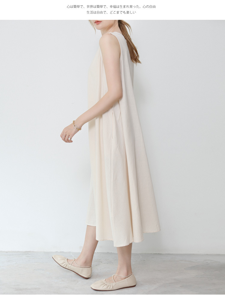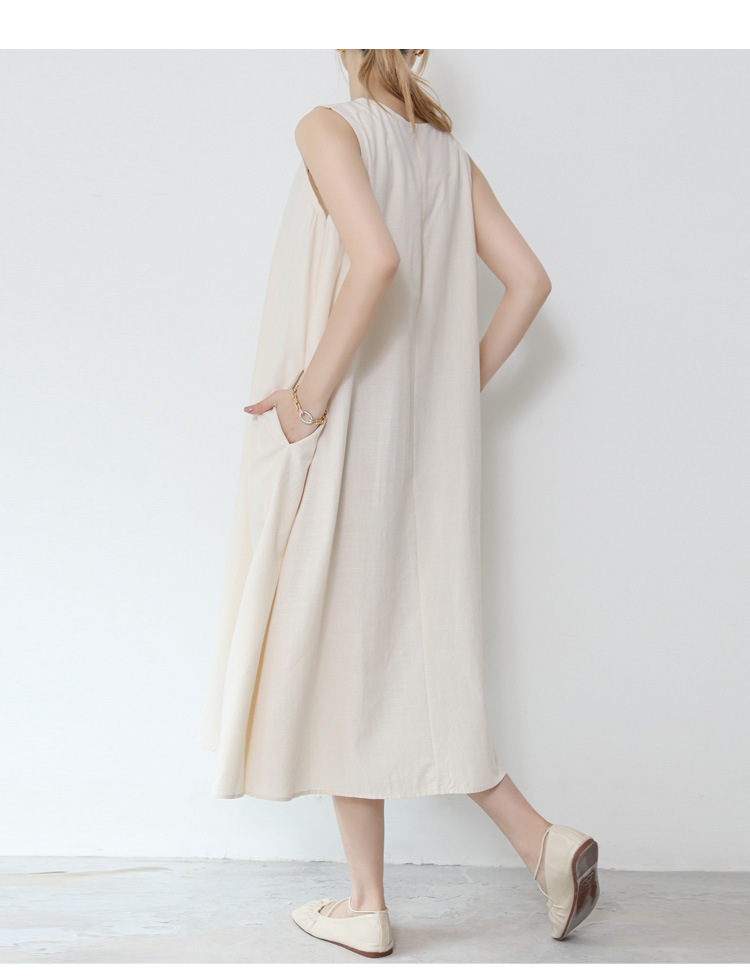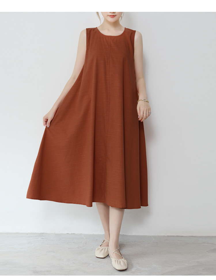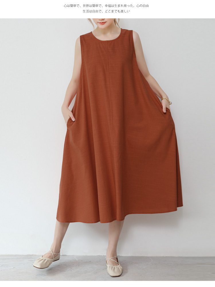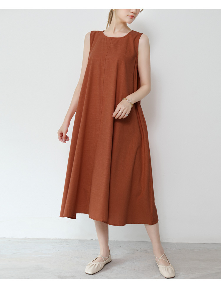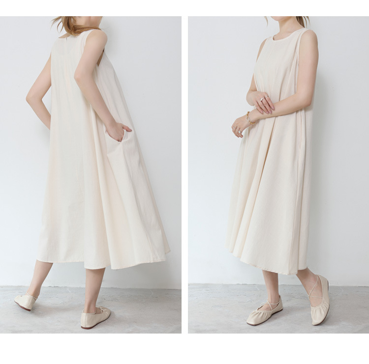 진짜 샷 2024 여름 한국 세련된 바람 느슨한 큰 민소매 호박 색 긴면과 린넨 원피스 여성스토어 가기