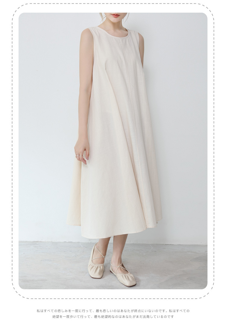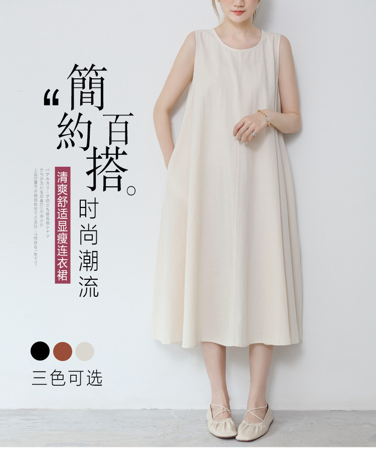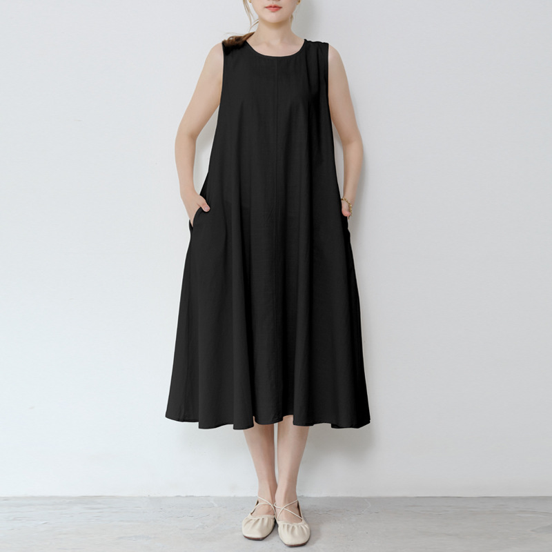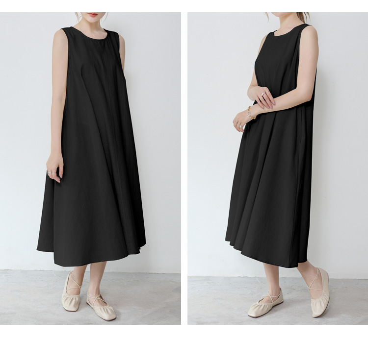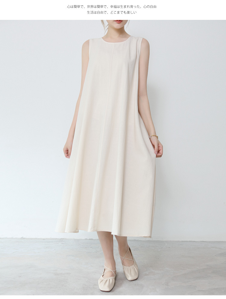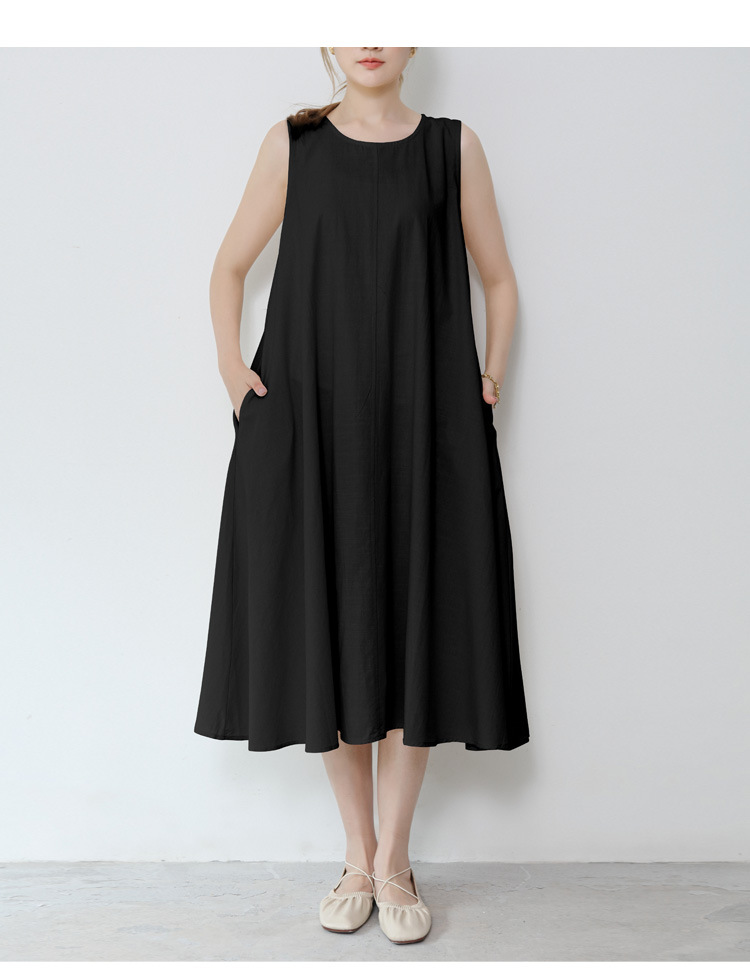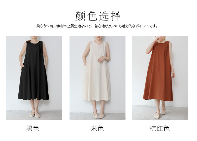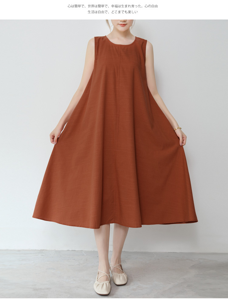 진짜 샷 2024 여름 한국 세련된 바람 느슨한 큰 민소매 호박 색 긴면과 린넨 원피스 여성스토어 가기