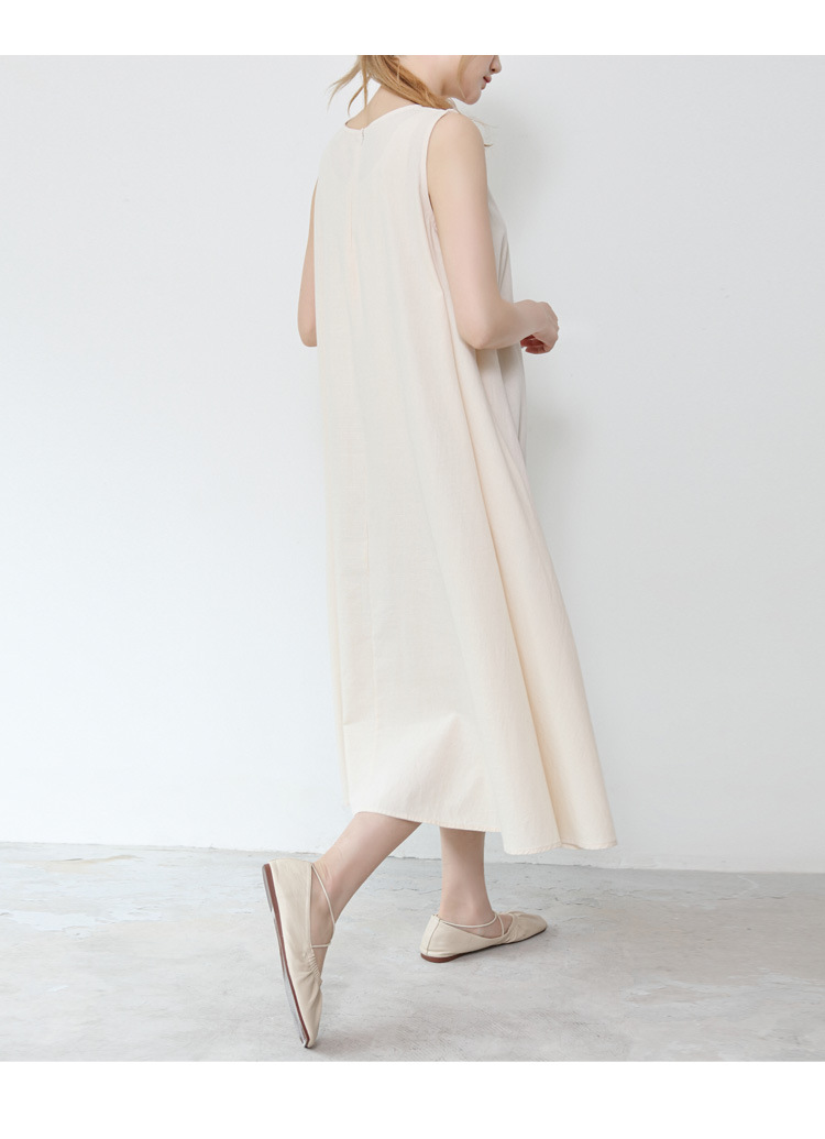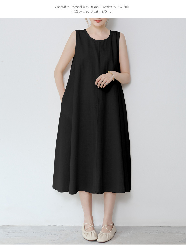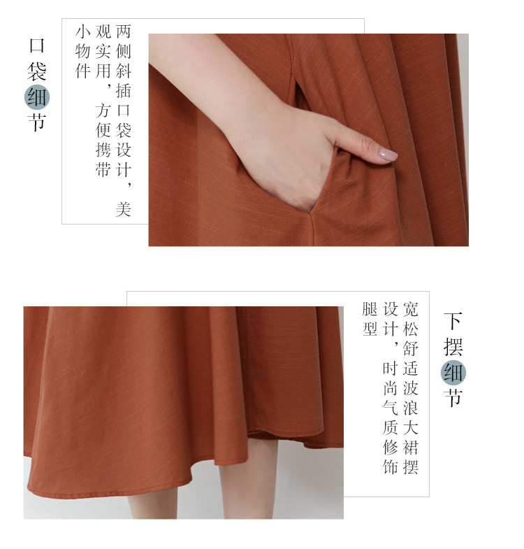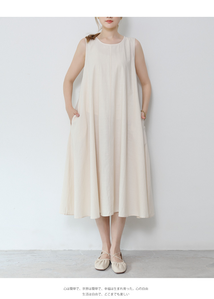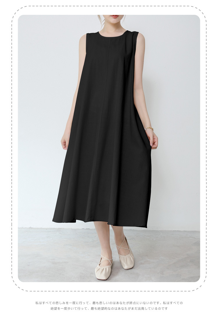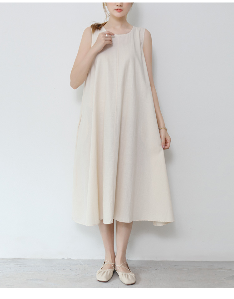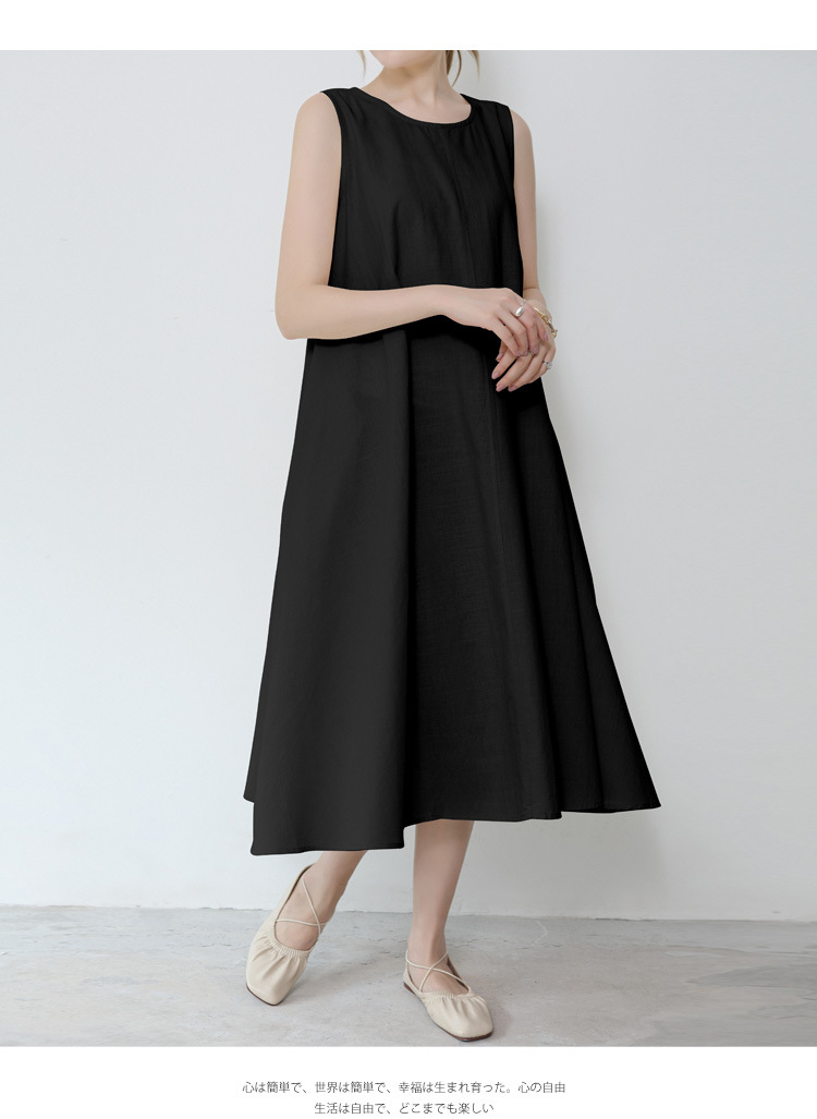 진짜 샷 2024 여름 한국 세련된 바람 느슨한 큰 민소매 호박 색 긴면과 린넨 원피스 여성스토어 가기