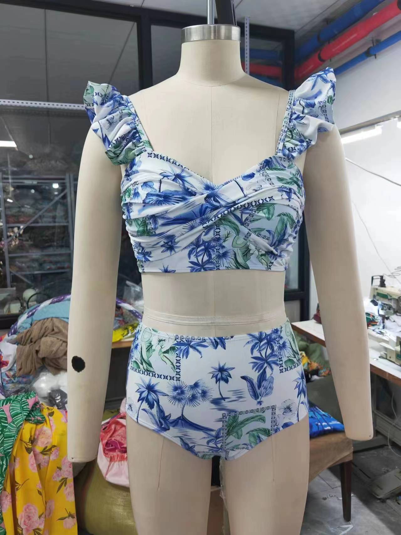 2024 유럽과 미국의 비키니 새로운 해변 휴가 인쇄 분할 수영복 세트 여성 국경 폭발스토어 가기