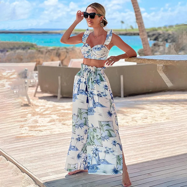 2024 유럽과 미국의 비키니 새로운 해변 휴가 인쇄 분할 수영복 세트 여성 국경 폭발