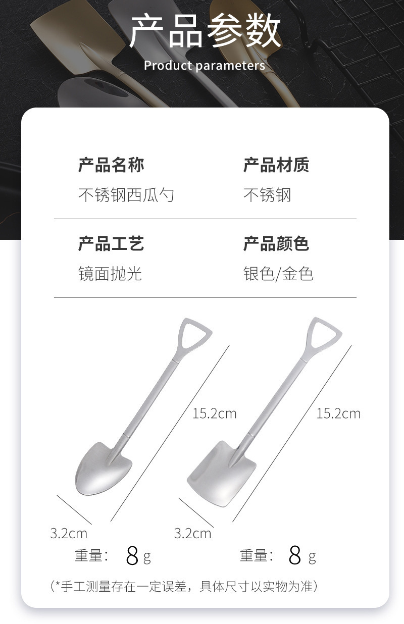 크리 에이 티브 스테인레스 스틸 수박 스푼 가정용 도매 삽 스푼 아이스크림 스푼 골드 인터넷 연예인 스푼 귀여운 스푼 디저트 스푼