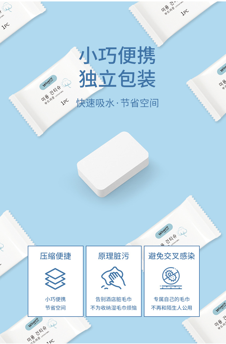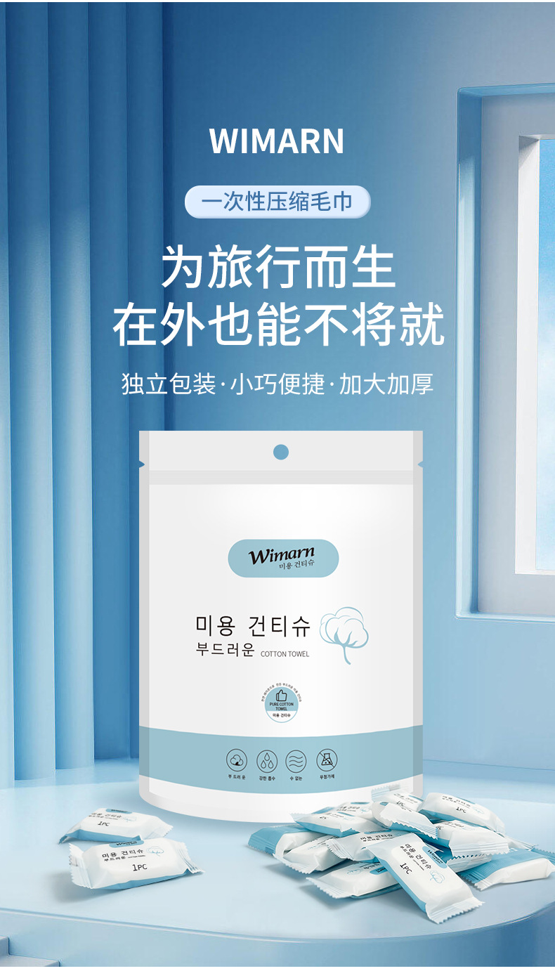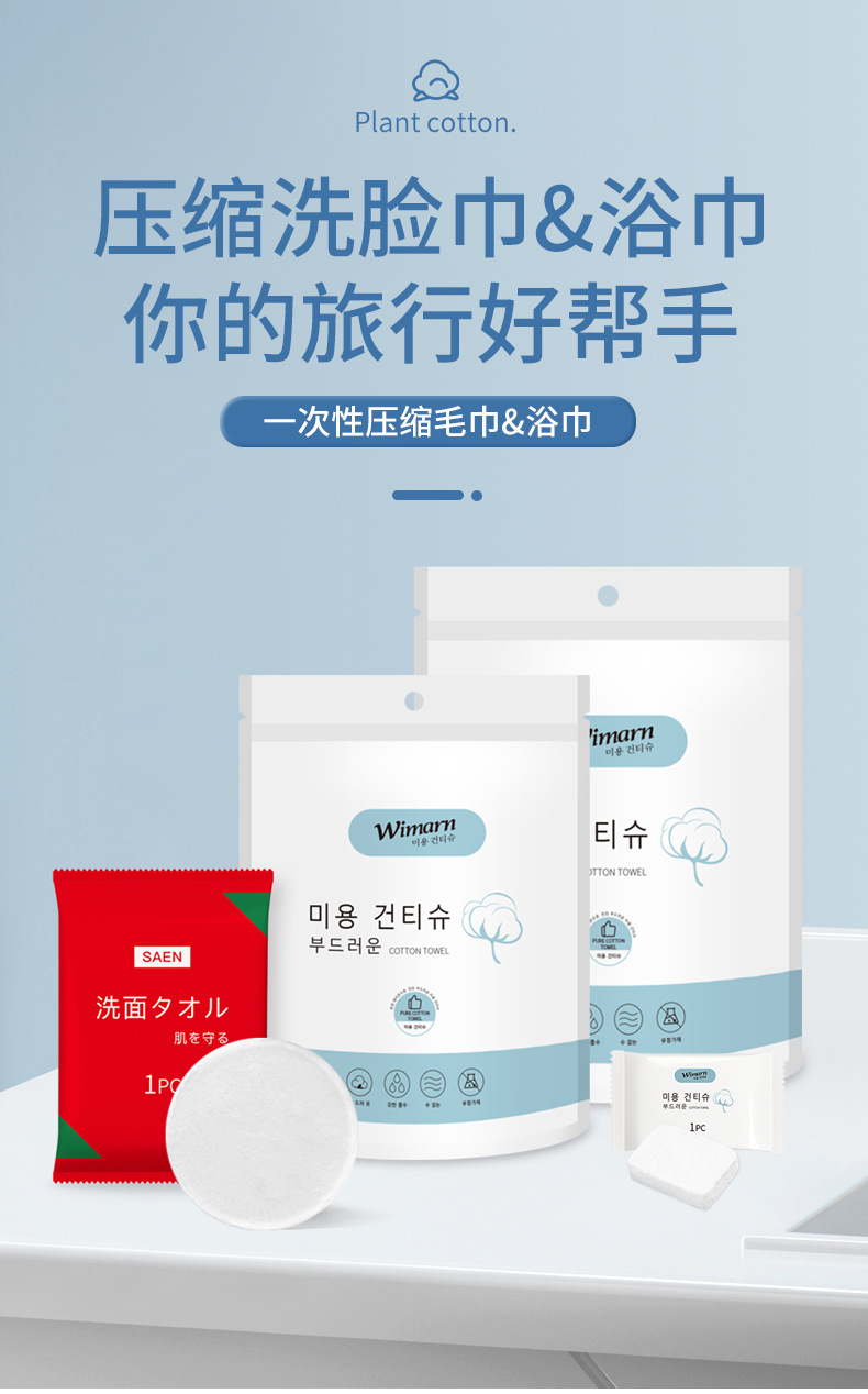 일회용 압축 목욕타월, 세면타월, 출장용, 두꺼워지고 크고 개별 포장된 휴대용스토어 가기