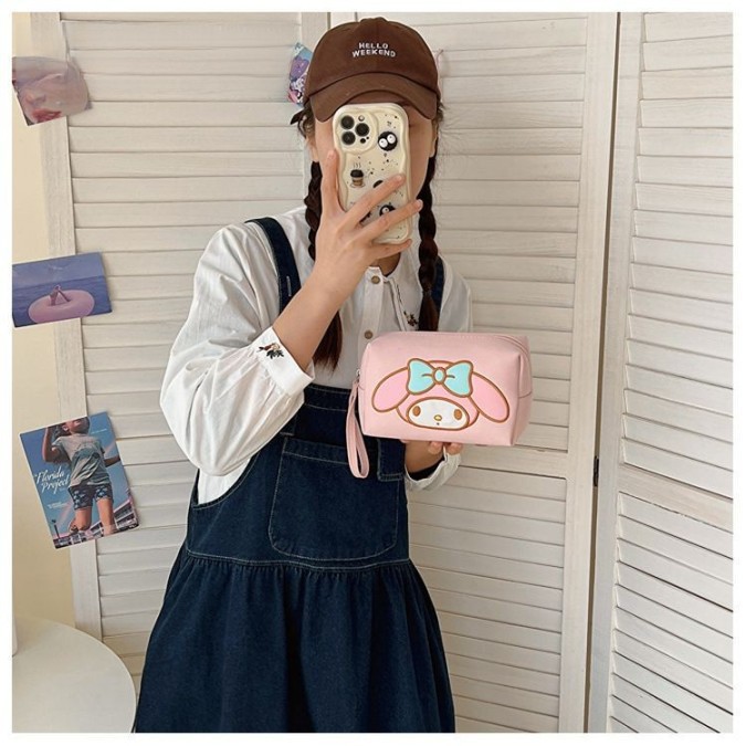 만화 귀여운 파차 개 손을 들고 2024 화장품 가방 휴대용 화장품 가방 여행 휴대용 화장품 가방 화장실 가방스토어 가기