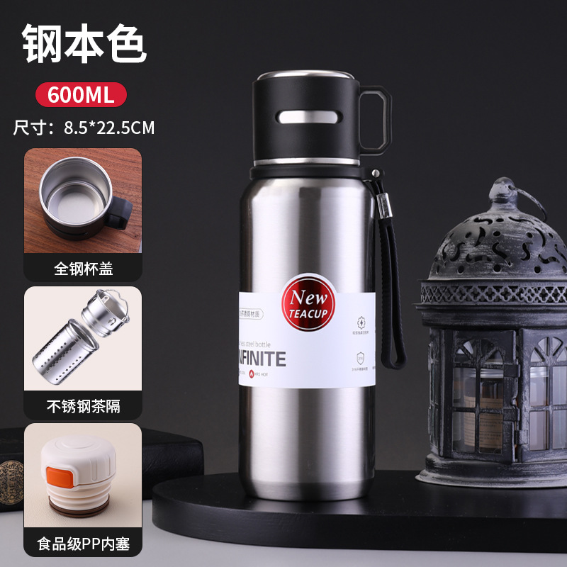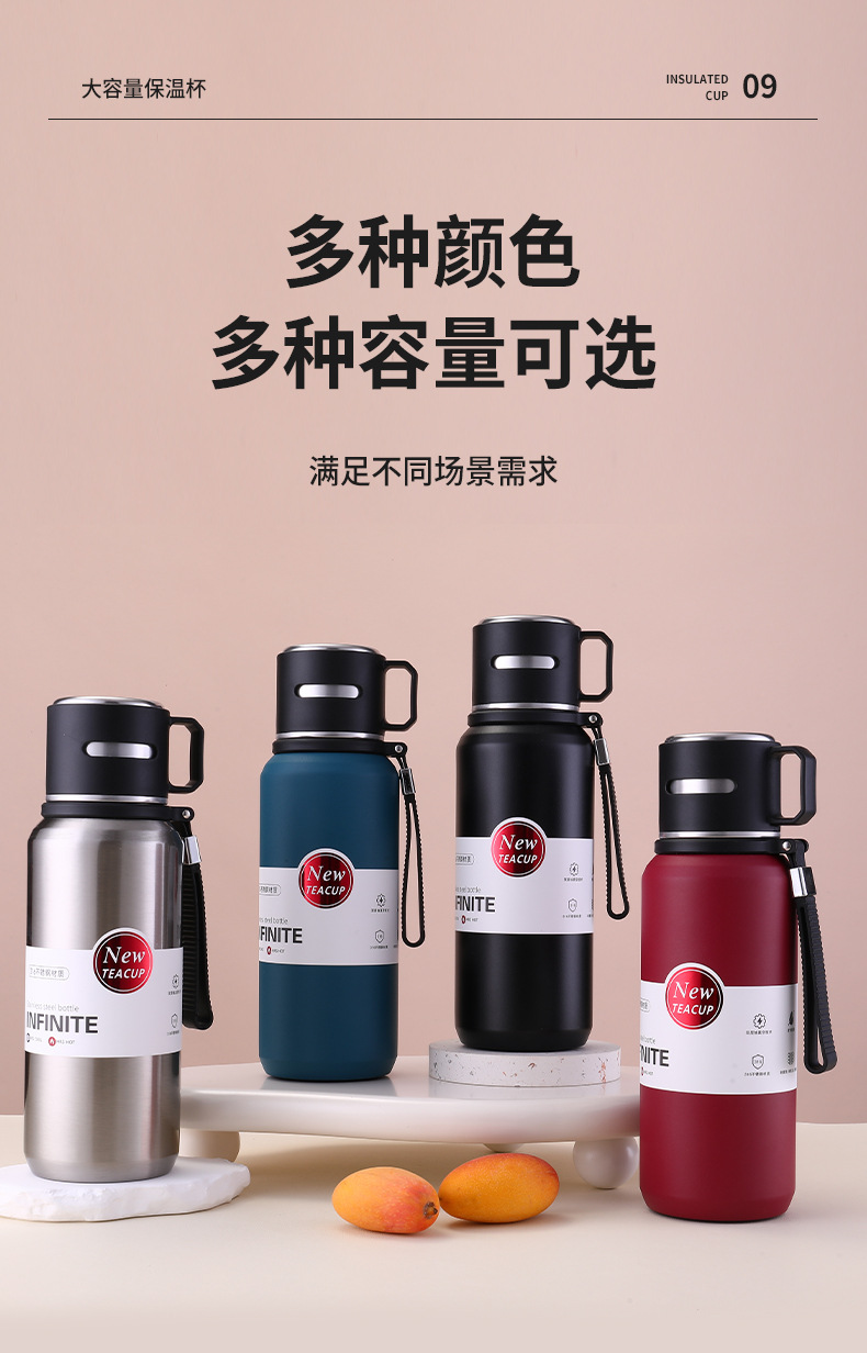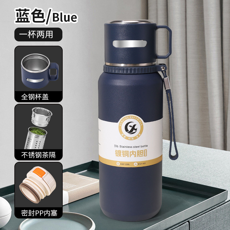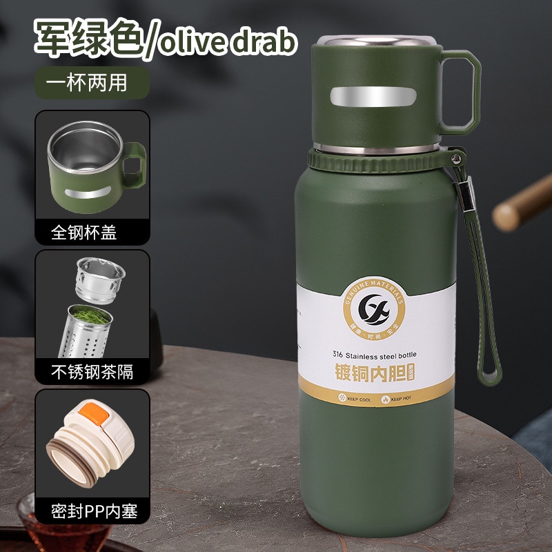 신형 316 스테인리스 보온병 대용량 야외 휴대용 물병 손잡이 포함 차와 물 분리 스포츠 물병