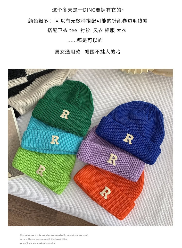 한국식 가을과 겨울 문자 R 간단한 올 매치 니트 캡 냉장 따뜻한 캡으로 남녀 표준 울 캡
