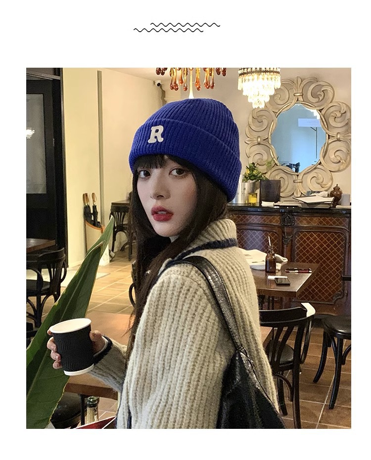 한국식 가을과 겨울 문자 R 간단한 올 매치 니트 캡 냉장 따뜻한 캡으로 남녀 표준 울 캡스토어 가기