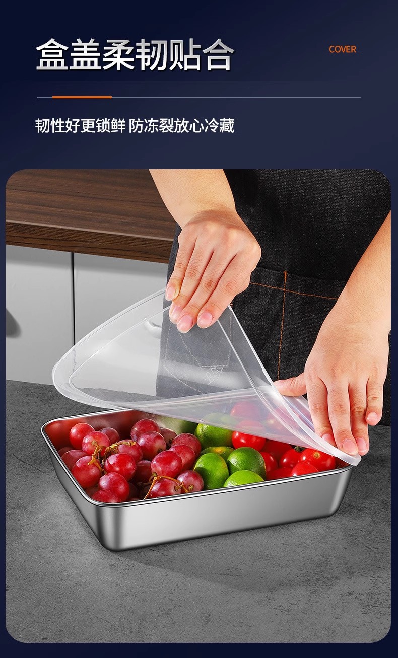 스테인레스 스틸 스퀘어 플레이트와 뚜껑 디너 플레이트 서브 세트 야채 베이킹 바베큐 플레이트 상업용 가정용 구운 생선 저장 수건 플레이트스토어 가기