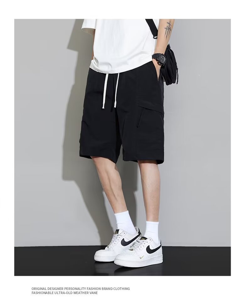 남자를위한 여름 툴링 반바지 일본 스타일 레트로 느슨한 유행 중간 길이 바지 Taslon 기능성 바지