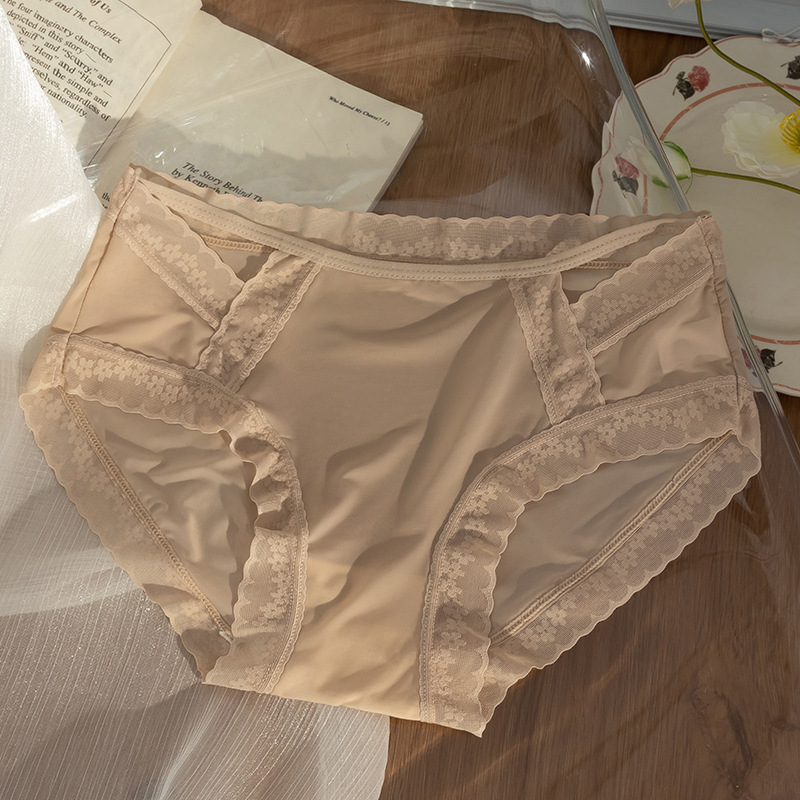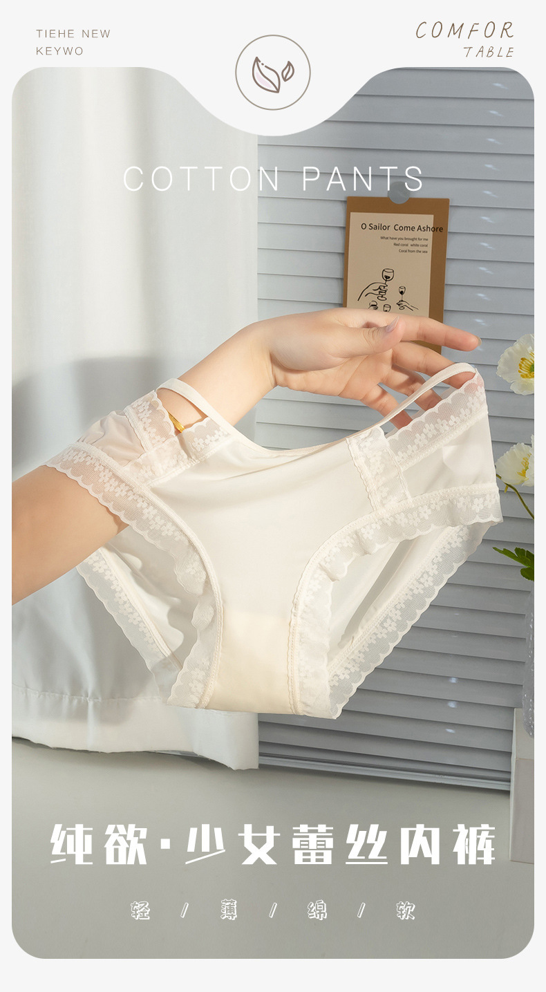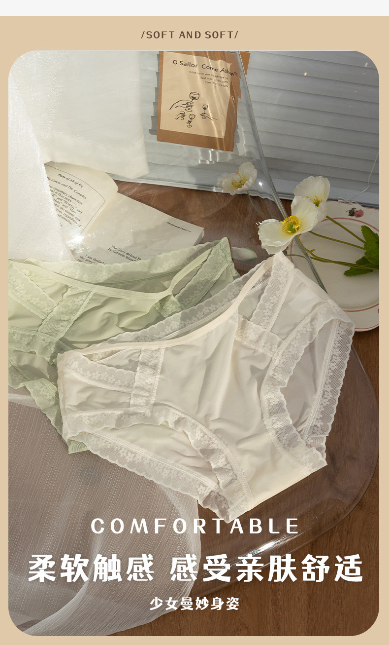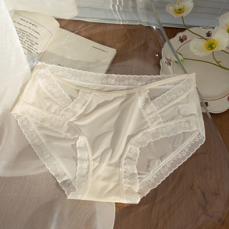 일본식 스위트 아이스 실크 속옷 여성용 traceless 항균 크로트 순수한 욕망 할로우 아웃 섹시한 여성용 삼각형 반바지 여름 얇은