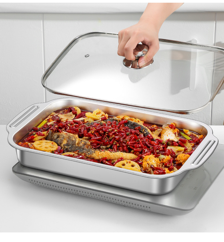 두꺼운 스테인리스 가재 접시, 상업용 트레이, 생선구이 접시, 소스 접시, 가정용 조리 준비 직사각형 접시