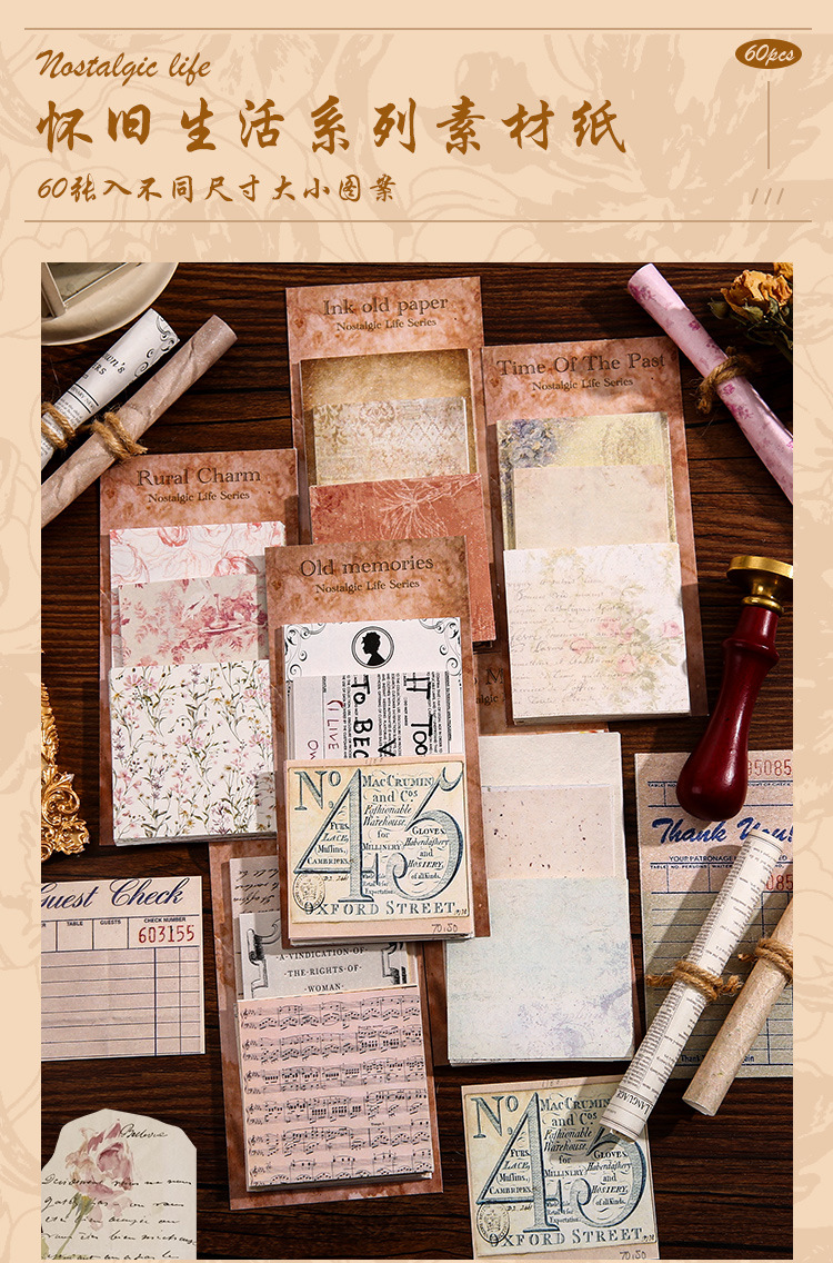 창조적 인 복고풍 향수 생활 시리즈 소재 종이 학생 DIY 백킹 배경 손 계정 소재 신문 노트 종이스토어 가기