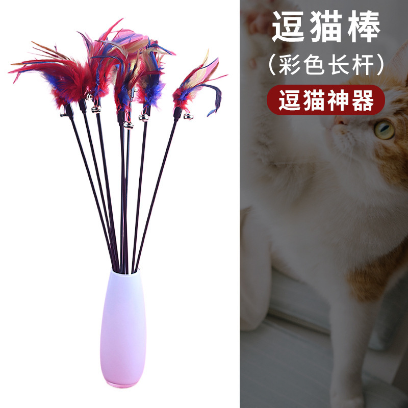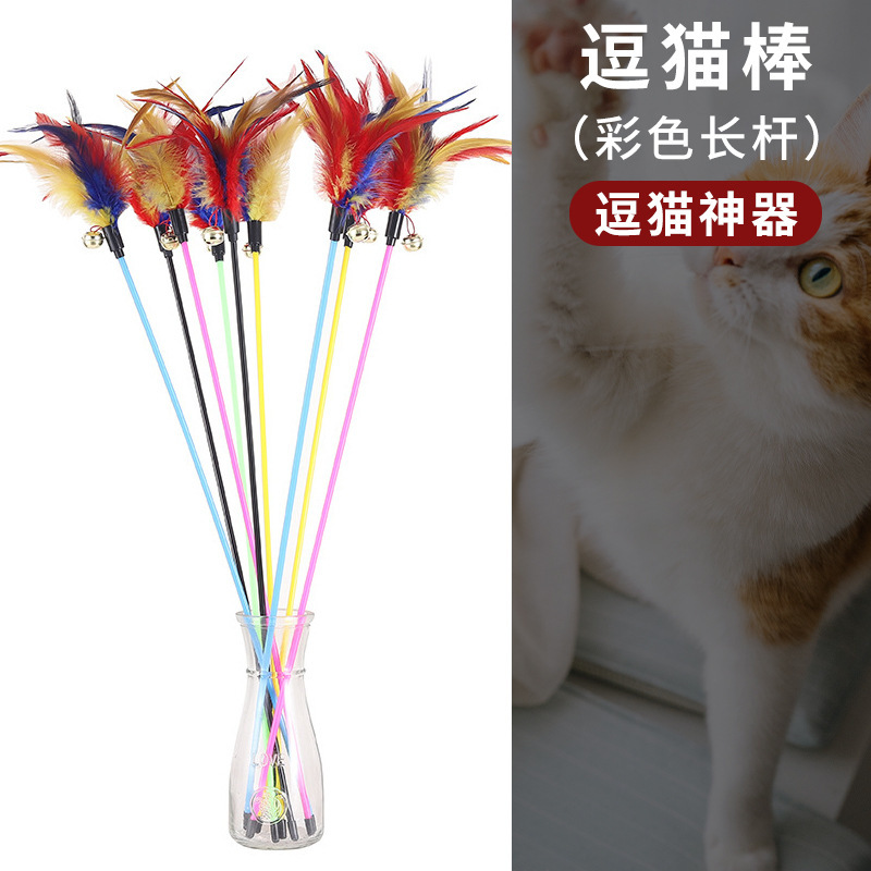 국경을 넘는 새로운 고양이 장난감, 고양이 장난감, 요정 지팡이, 자체 자극 벨, 깃털 긴 막대, 물림 방지 애완 동물 용품 도매
