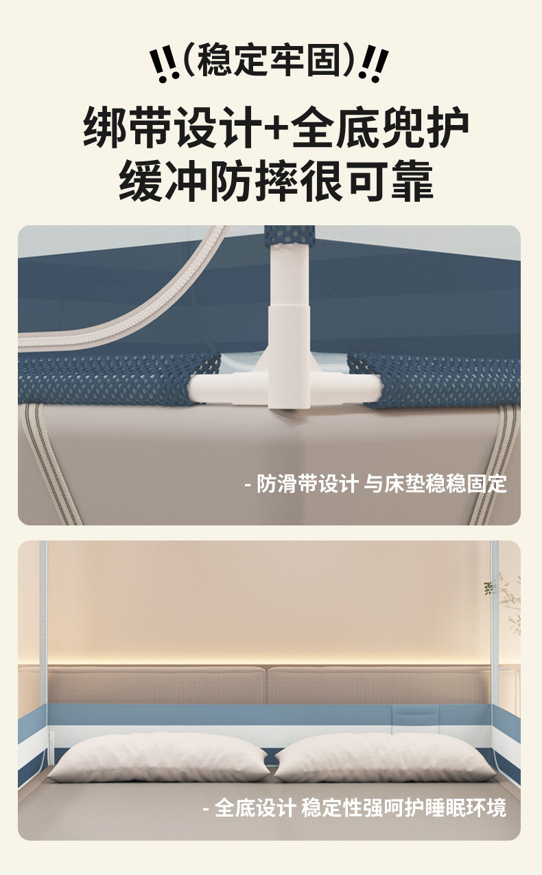 • 단색 문자 - 귀여운 핑크색 [전체 바닥 + 이중 도어] - 새로운 낙하 방지 및 모기 방지