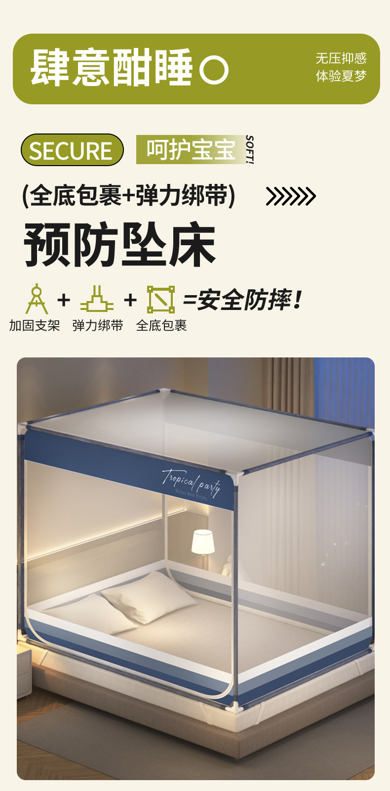 • 기하학적 패턴 - Mengguang Blue [전체 바닥 + 이중 도어] - 새로운 낙하 방지 및 모기 방지