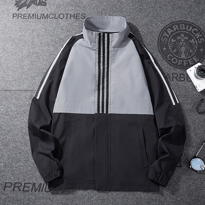 봄과 가을 새로운 남자 코트 컬러 매칭 칼라 패셔너블 캐주얼 루즈 편안한 올 매치 스포츠 재킷 남자 윈드 브레이커