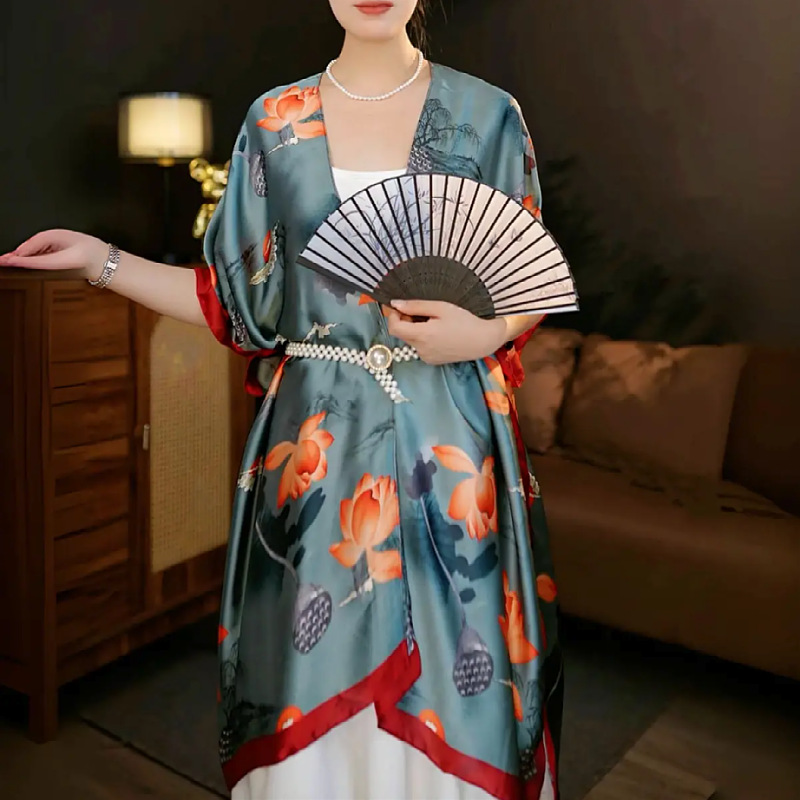 가벼운 럭셔리 시원한 느낌의 새틴 목도리 인쇄 실크 스카프 여성용 긴 외부 여름 자외선 차단제 슬리밍 슬리밍스토어 가기