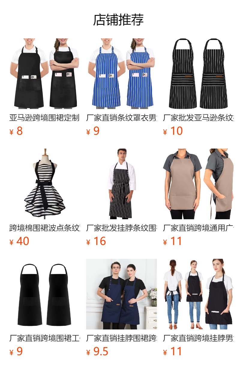 亚马逊跨境挂脖条纹围裙定制餐厅奶茶咖啡店家用厨房做饭围裙批发