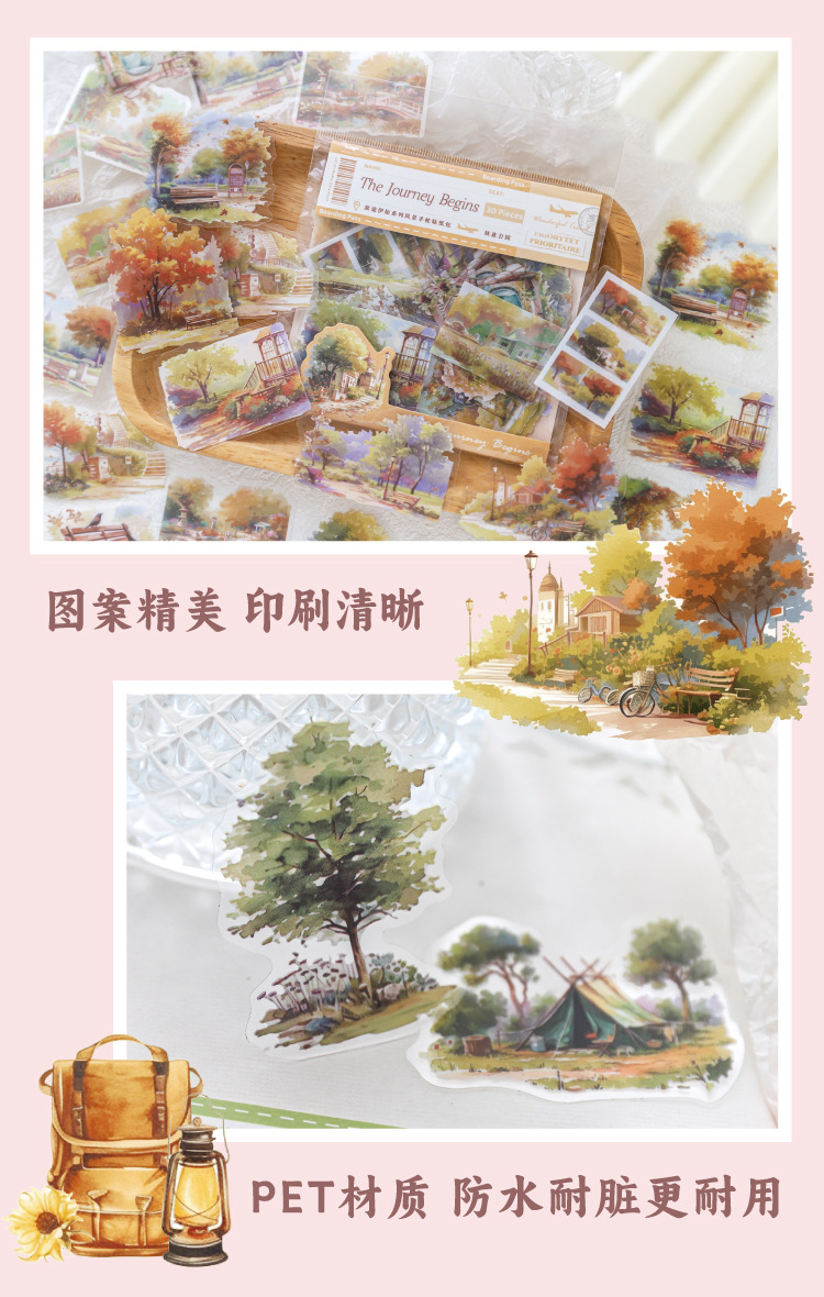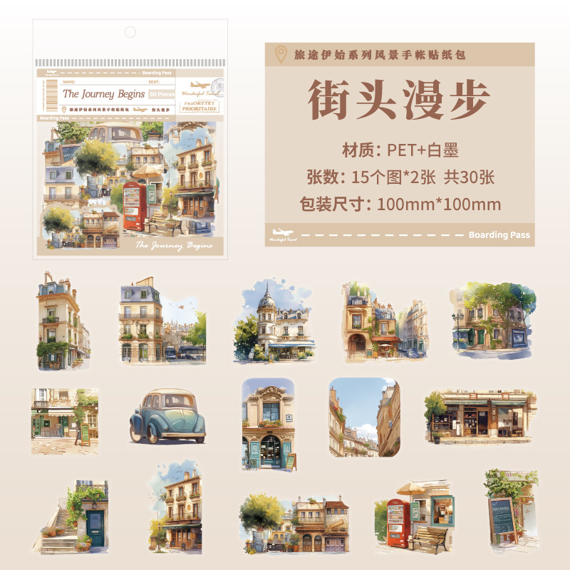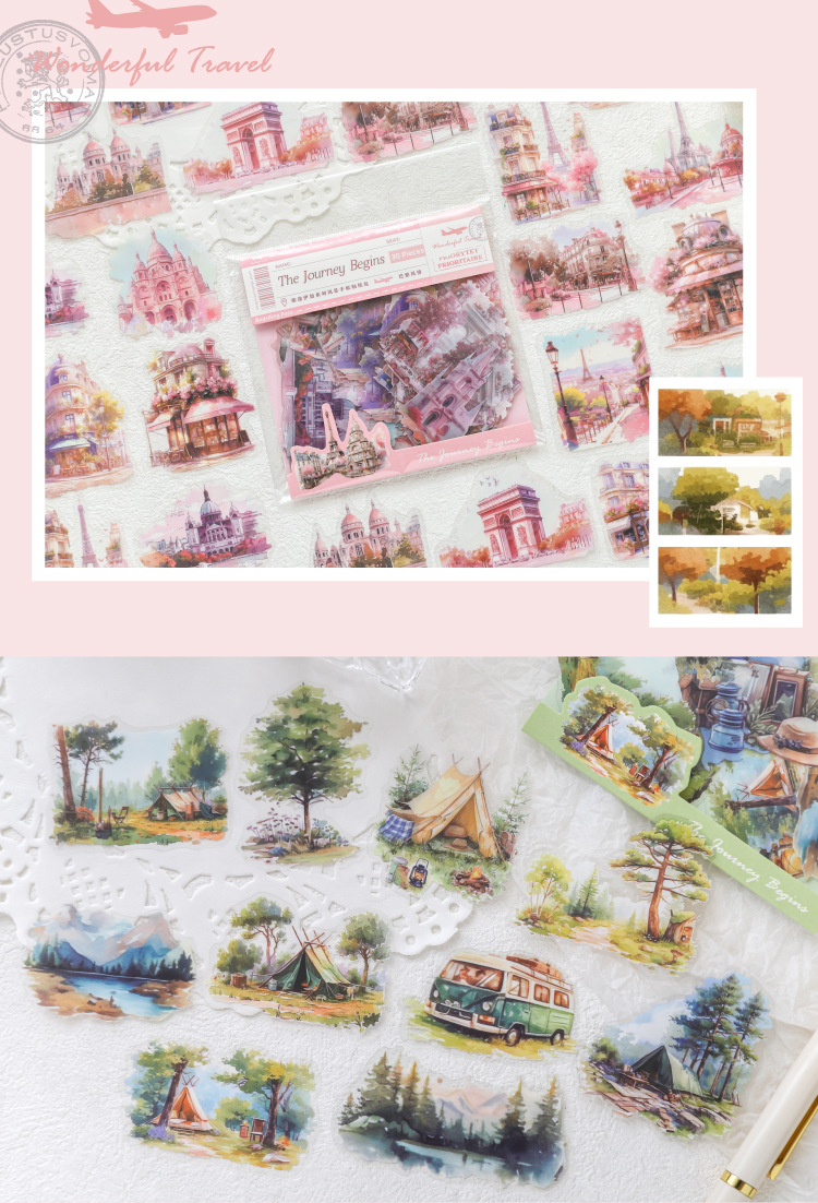 여행 손 계정 PET 스티커 복고풍 파리 로마 풍경 손 계정 절단 금형 장식 DIY 자기 접착 스티커의 시작스토어 가기
