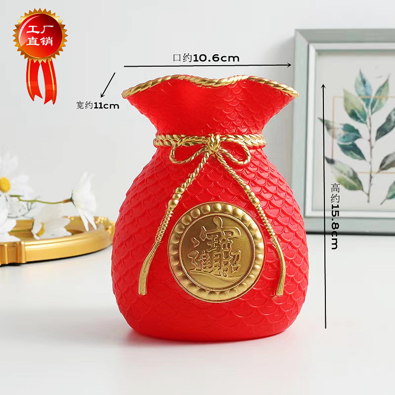 빨간색 행운의 꽃병, 부를 부르는 돈주머니, 축제용 인조 꽃 장식 꽃병, 부와 재물이 들어오는 장식품