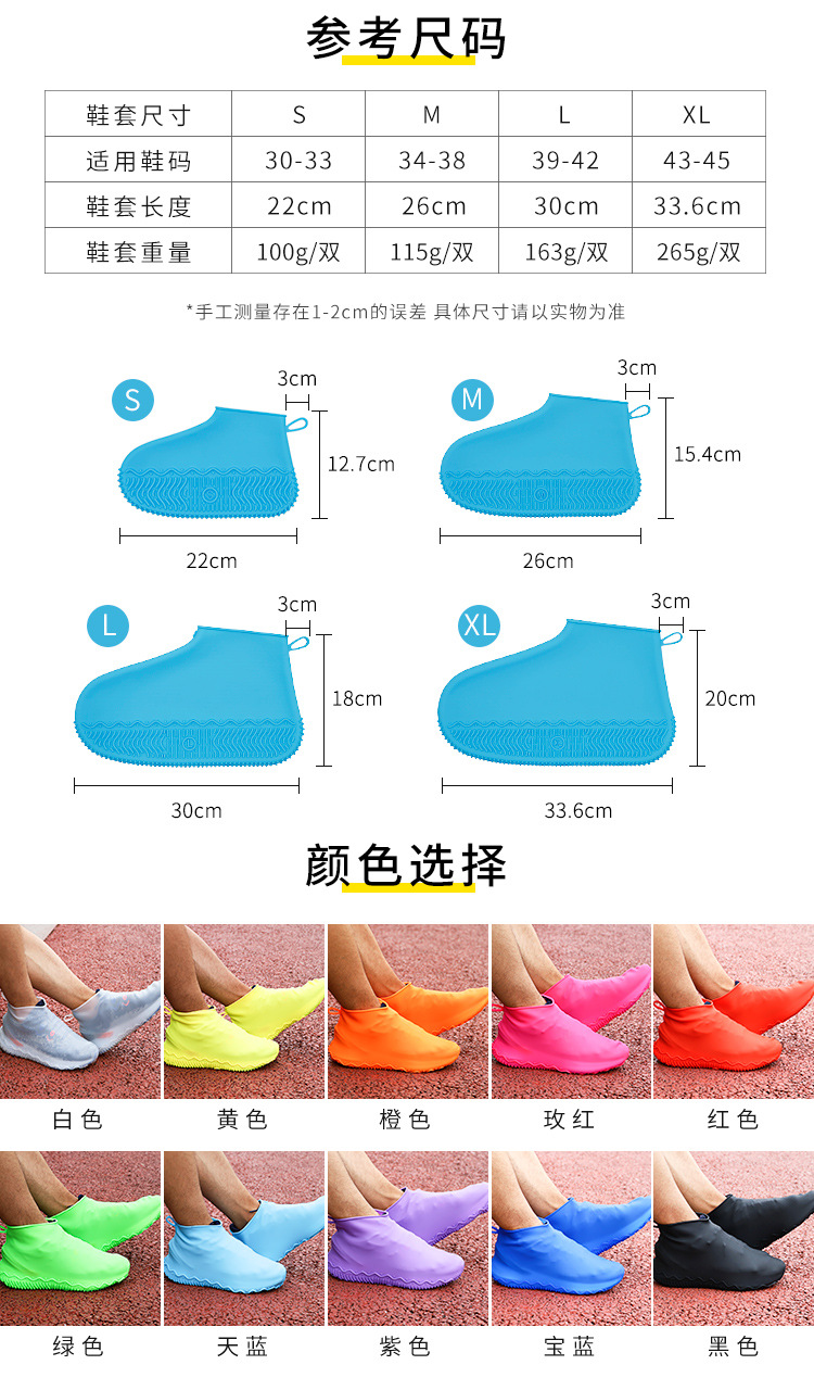공장 야외 실리콘 비 신발 커버 두꺼운 방수 비 슬립 장화 어린이 성인 휴대용 탄성 방수 신발 커버