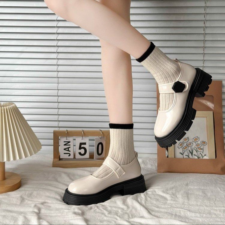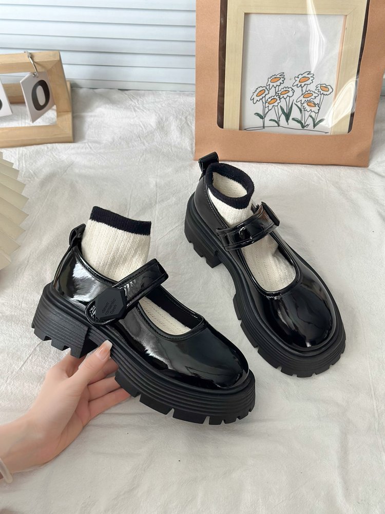 두꺼운 바닥 Mary Jane 신발 여성 2024 년 봄과 가을 새로운 후크 및 루프 영국 스타일의 작은 가죽 신발 여성 로퍼 도매스토어 가기