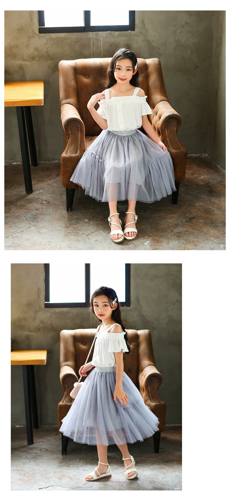대외 무역 아동복 소녀 여름 스커트 여름 원피스 큰 어린이 여름 메쉬 스커트 푹신한 원사 스커트 크로스 국경