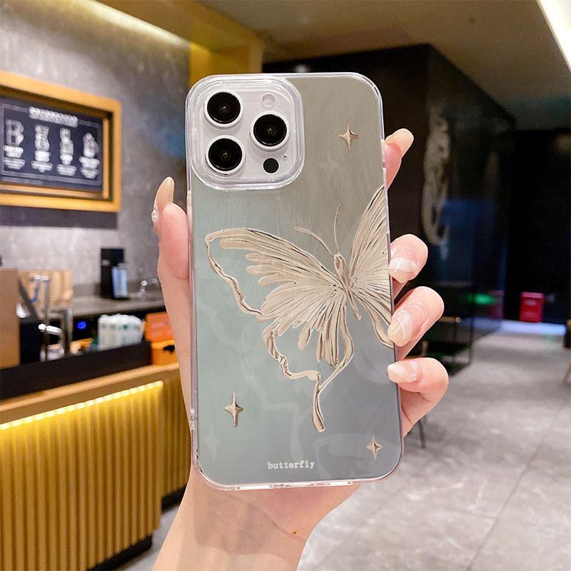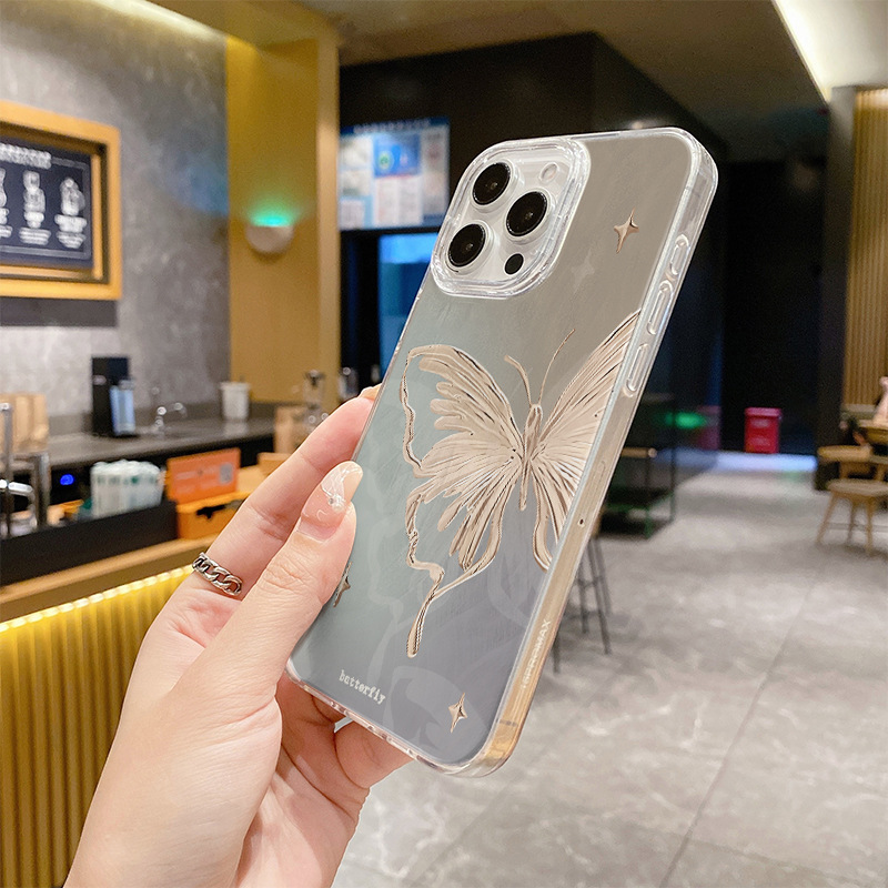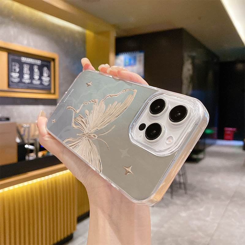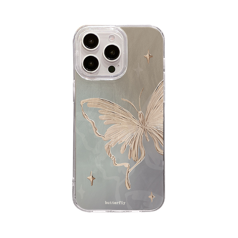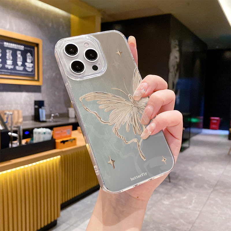 애플 15 깃털 원사 고급 센스 iphone16 전화 케이스 안티 드롭 13 크로스 국경을위한 새로운 브론징 나비