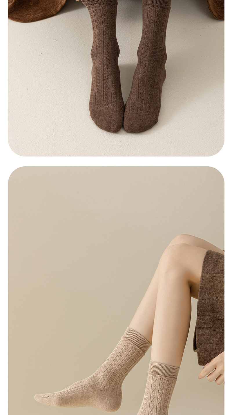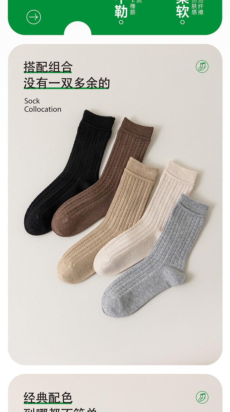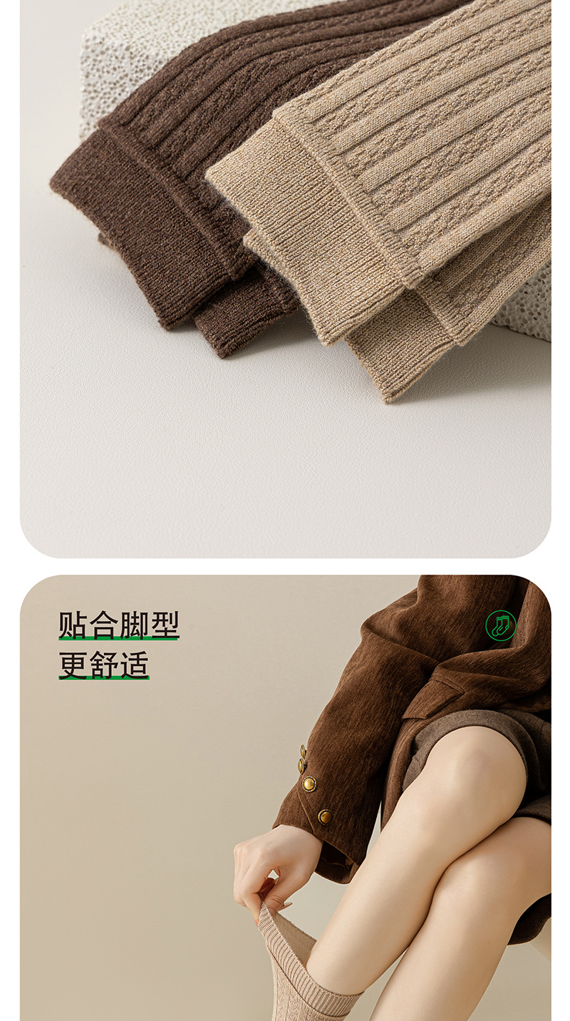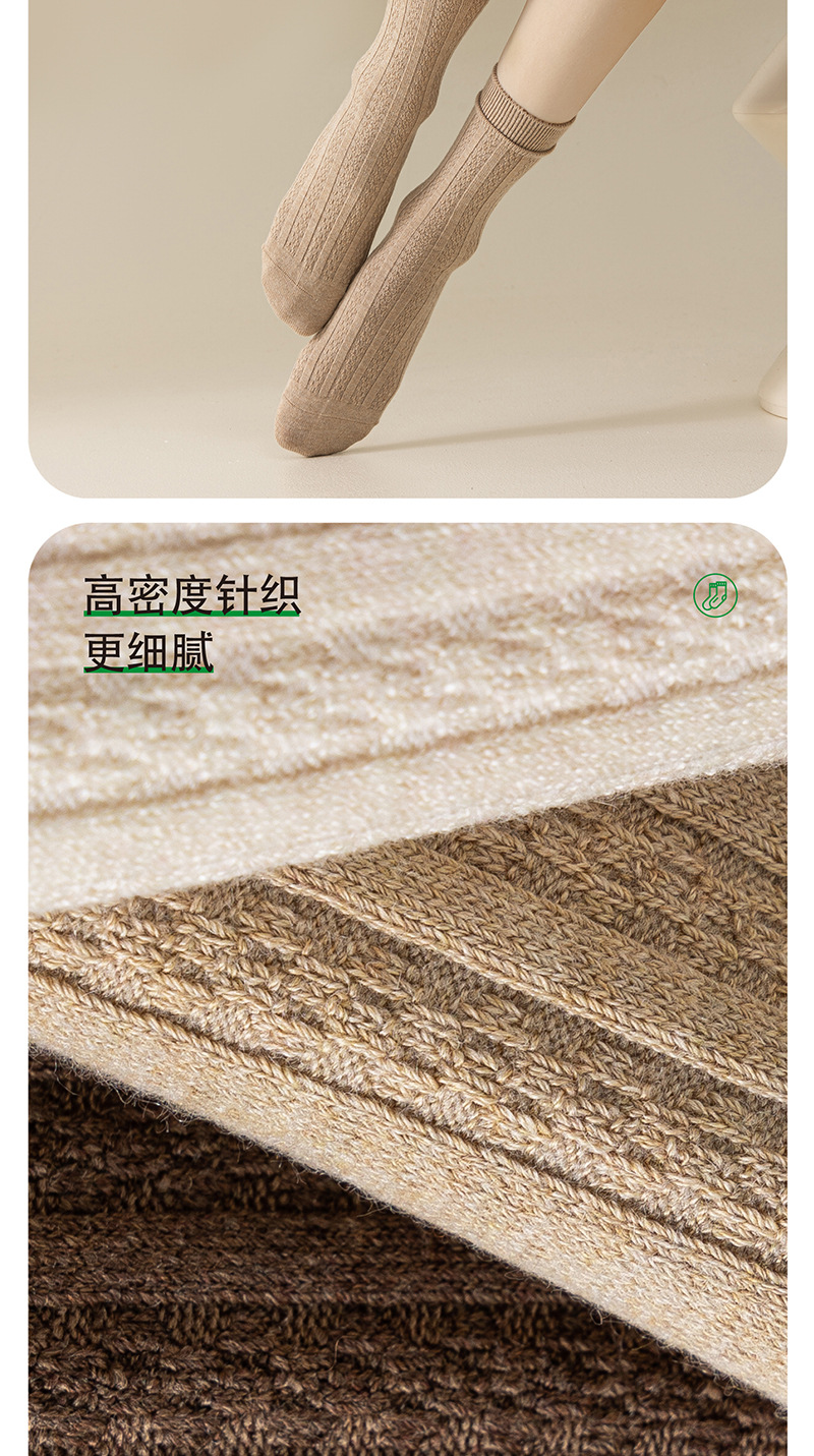 가을 겨울용 더블 로우 컷 울 여성용 중목 양말, 꼬임 디자인, 페이크 투피스 스타일, 컬리지 스타일, 따뜻한 양말, 항균 및 땀 흡수스토어 가기