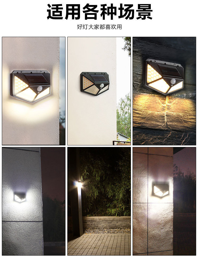 태양 빛 100LED 야외 안뜰 거리 빛 조명 인체 유도 벽 빛 태양 가로등