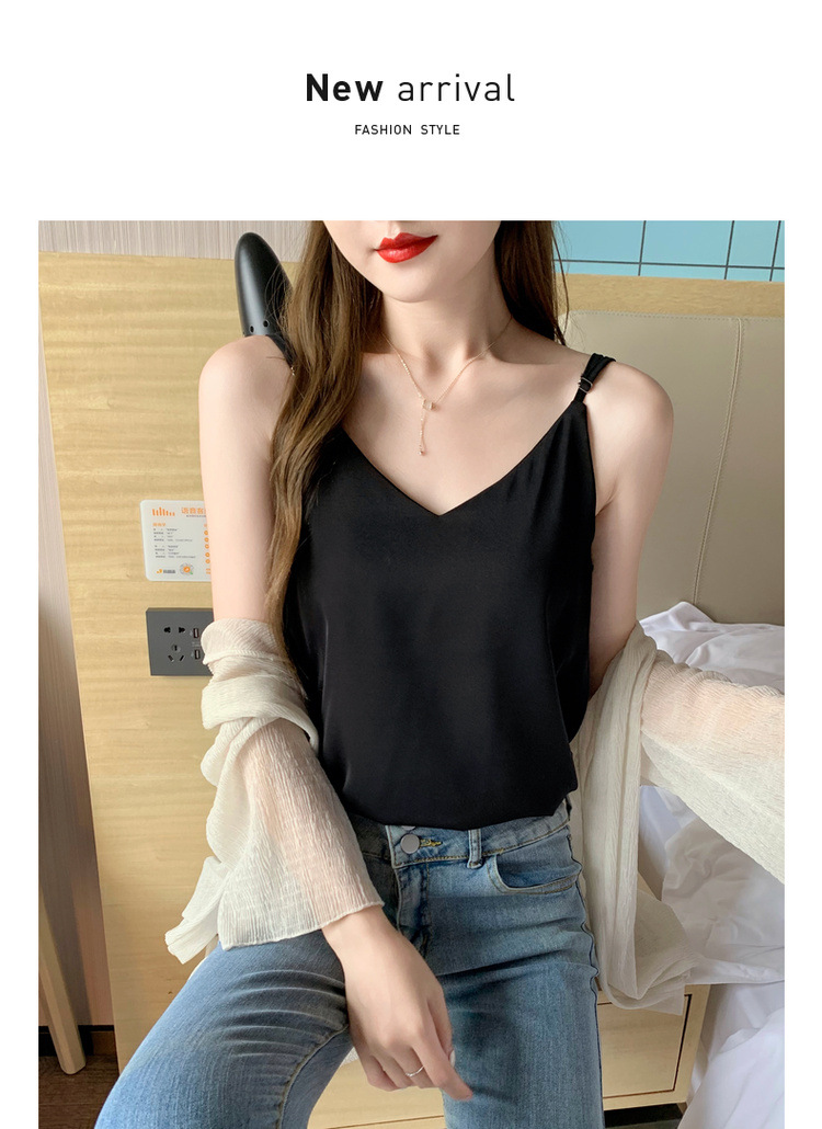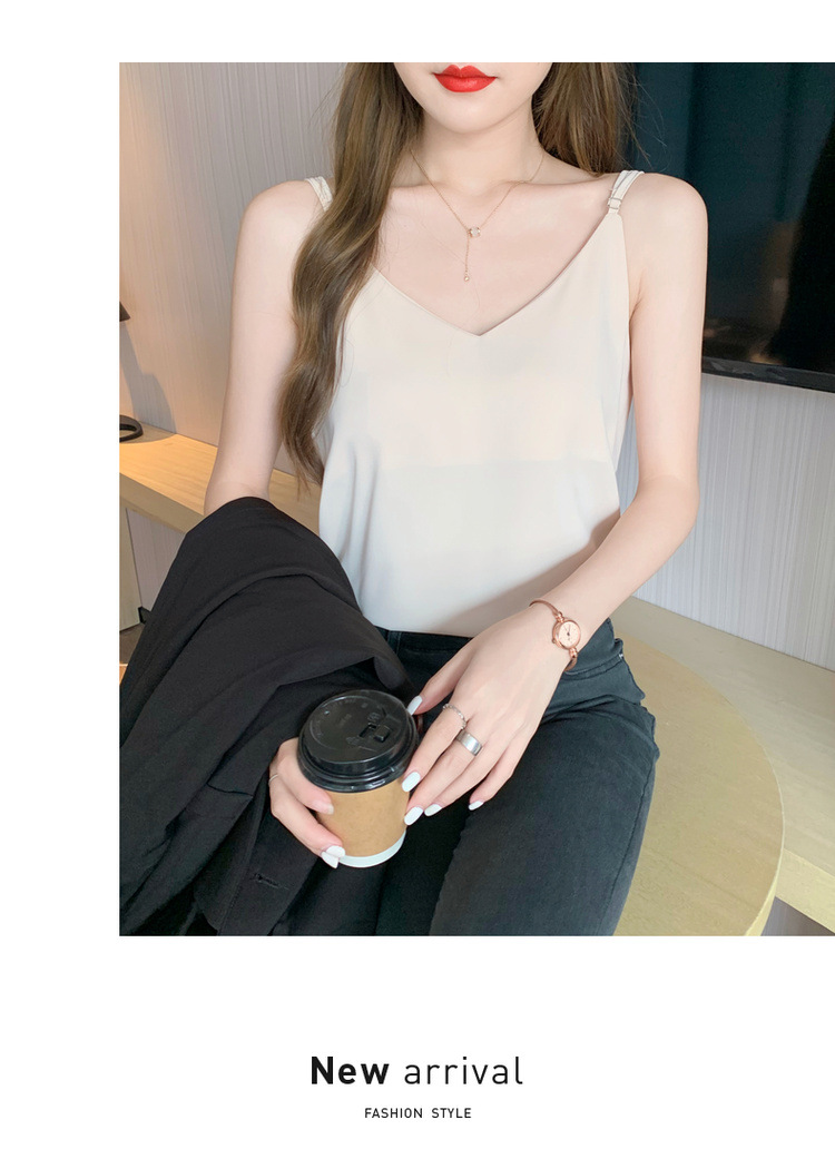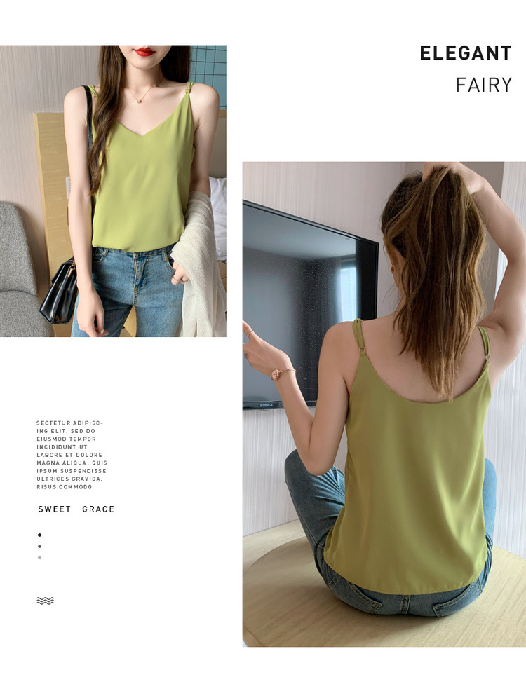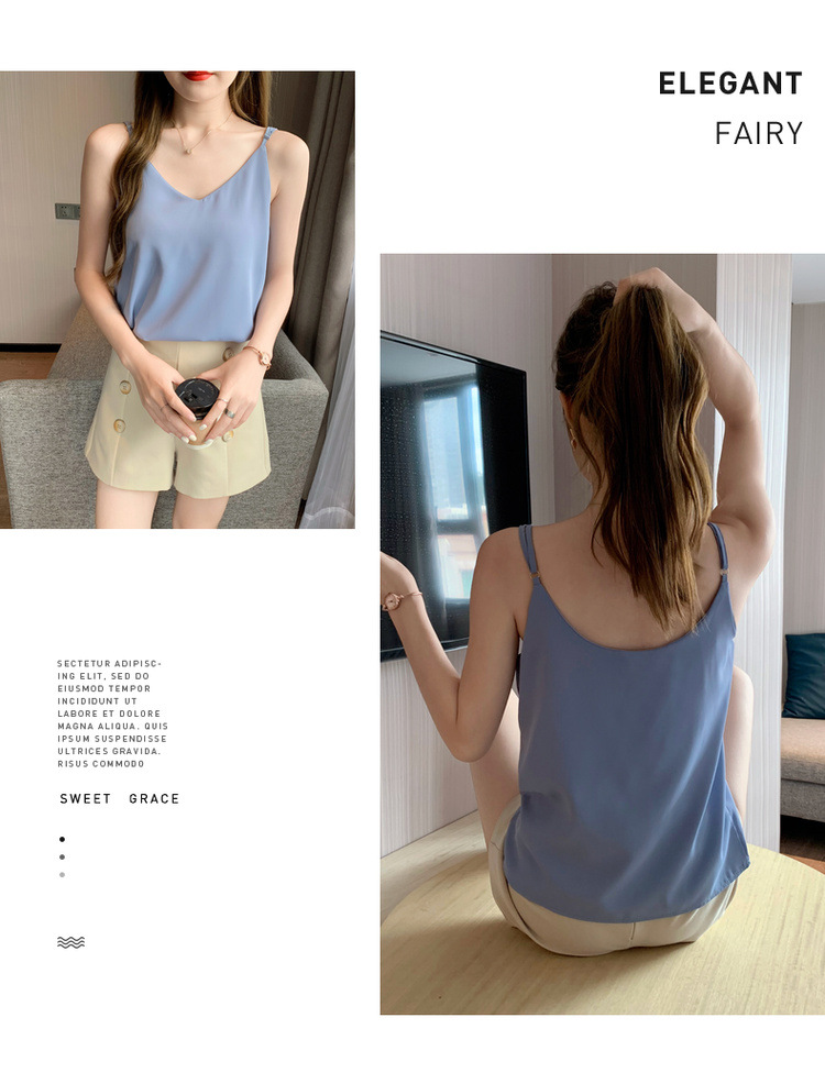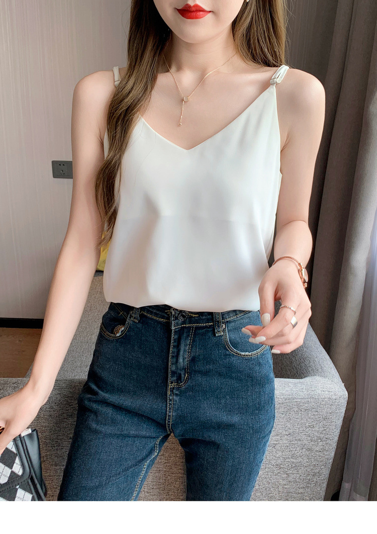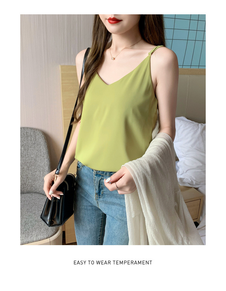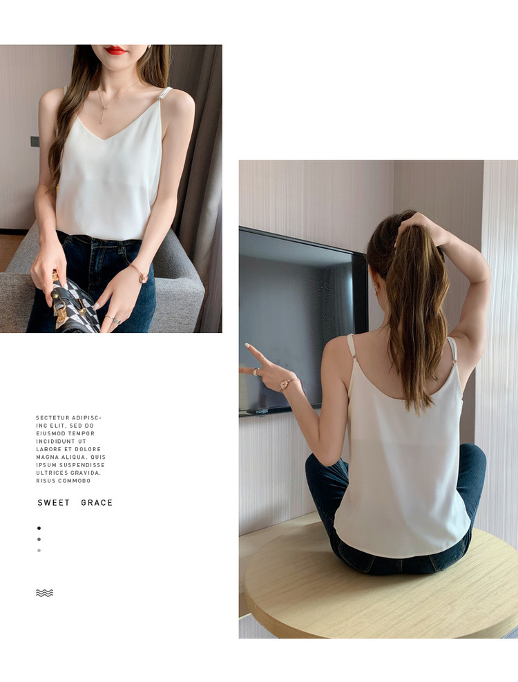 시폰 카미 솔 여자 2024 여름 V-목 조정 가능한 느슨한 외부 착용 내부 화이트 탑