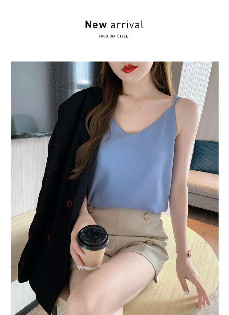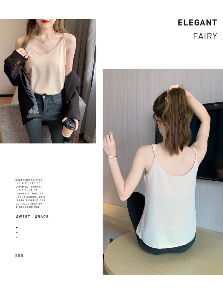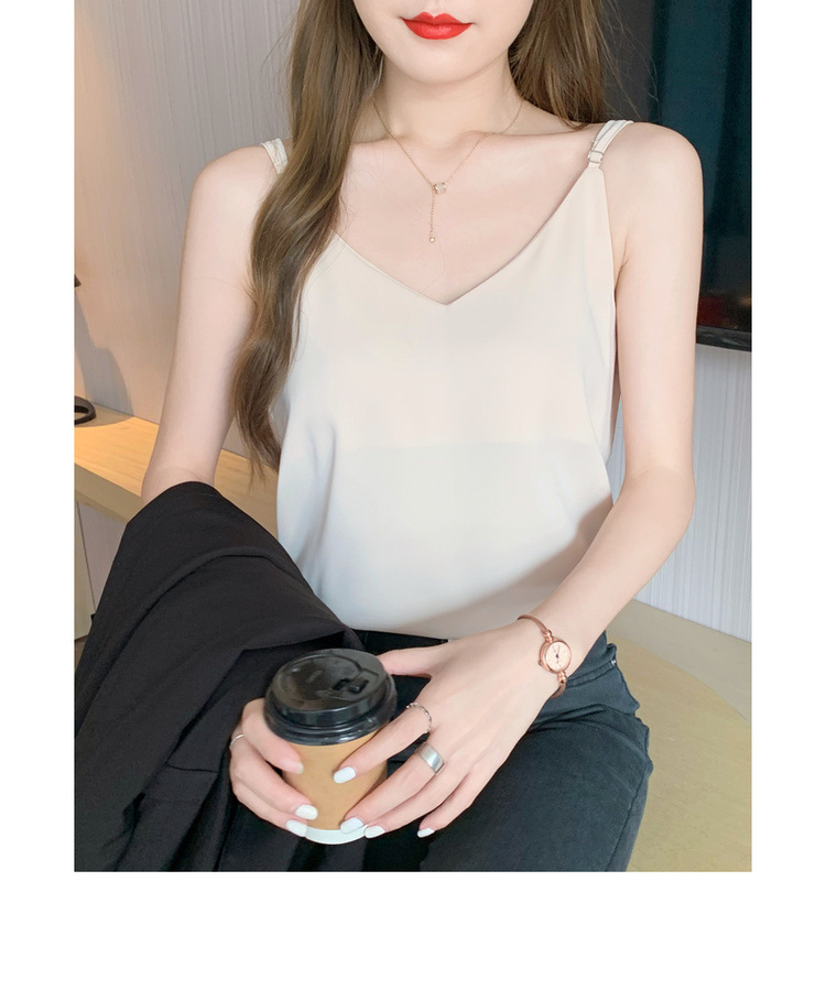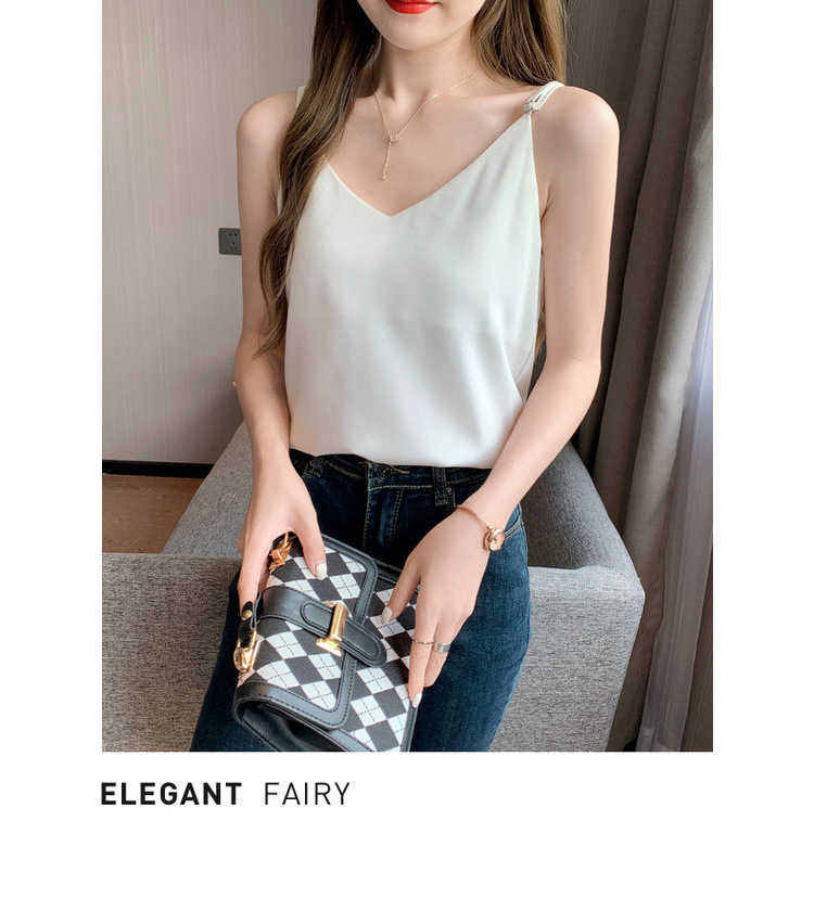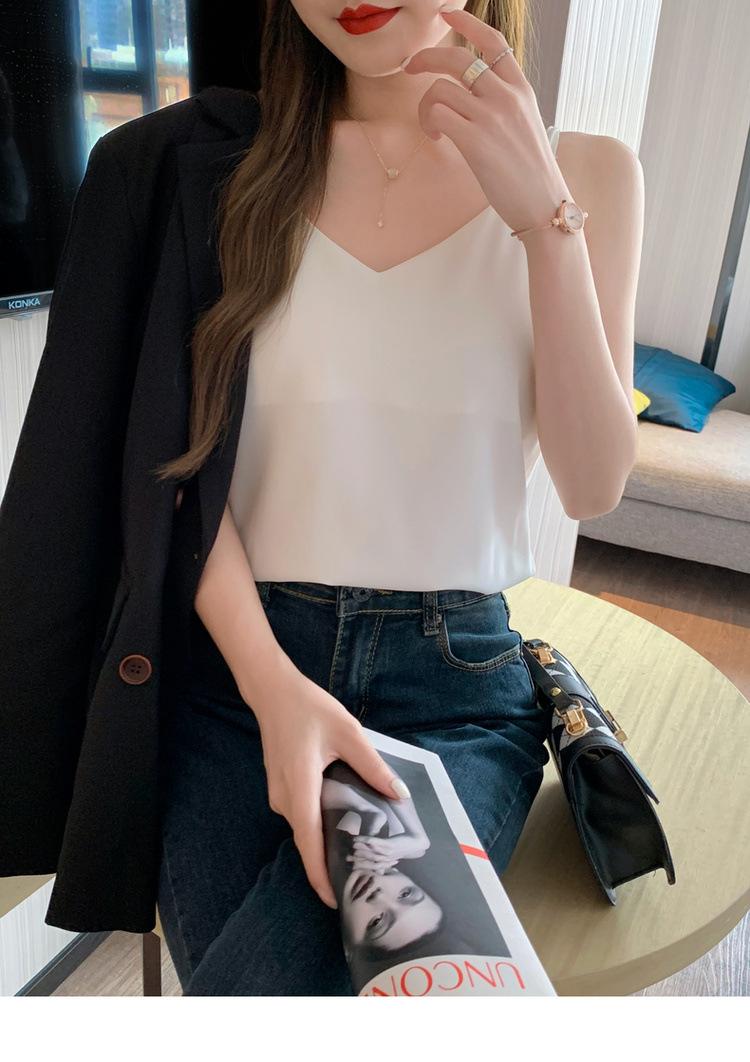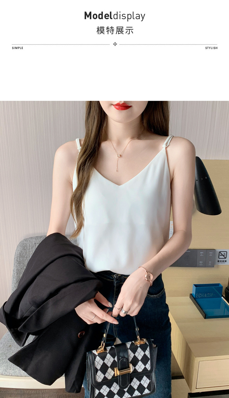 시폰 카미 솔 여자 2024 여름 V-목 조정 가능한 느슨한 외부 착용 내부 화이트 탑