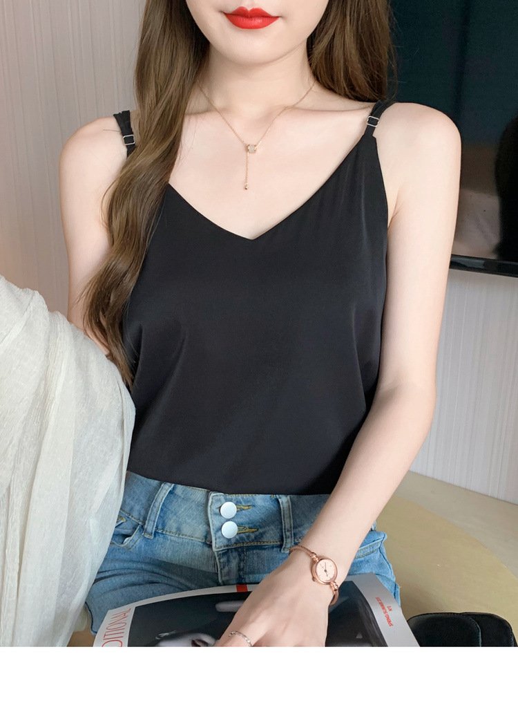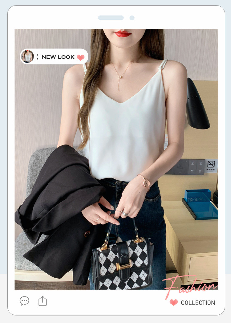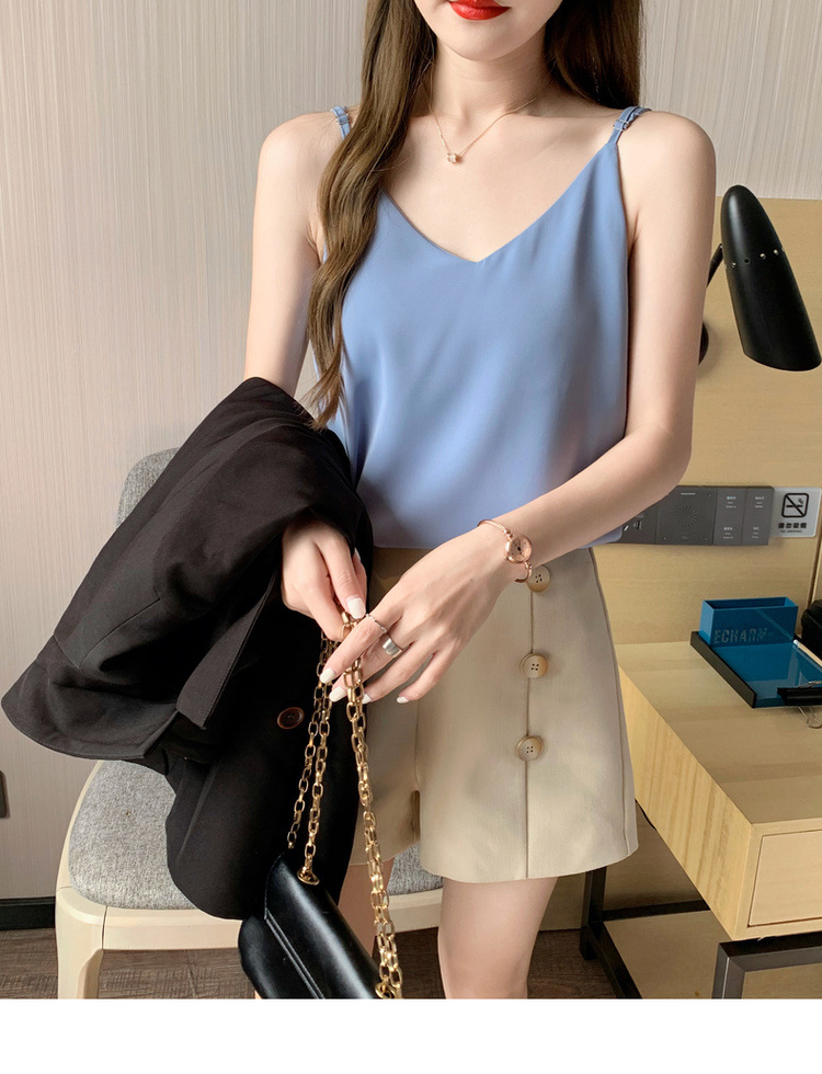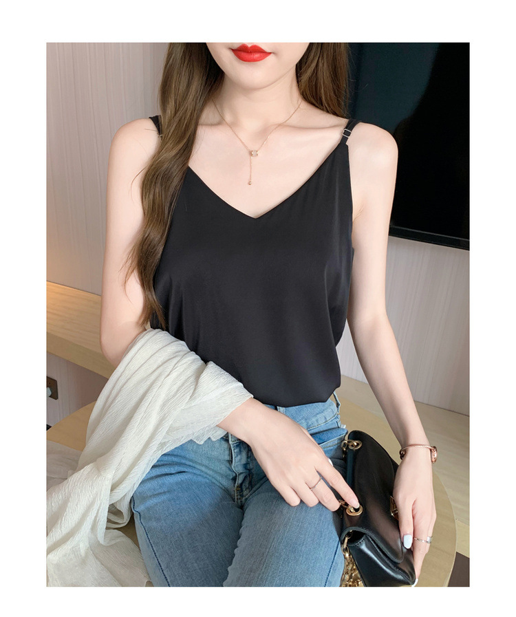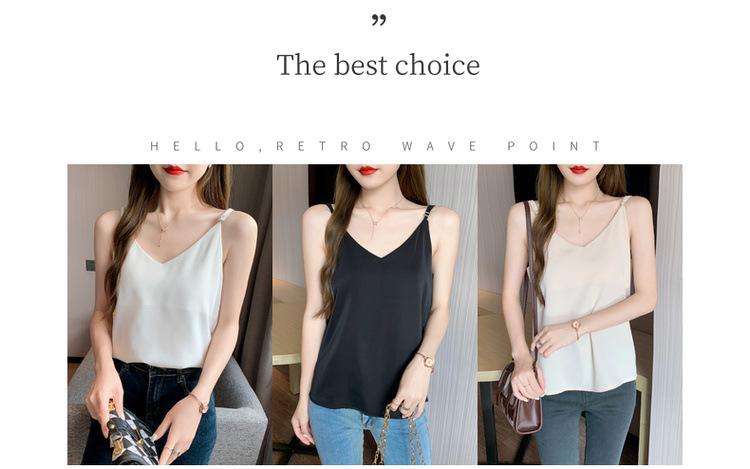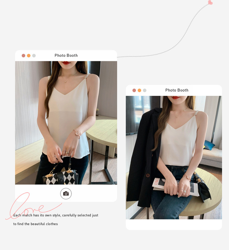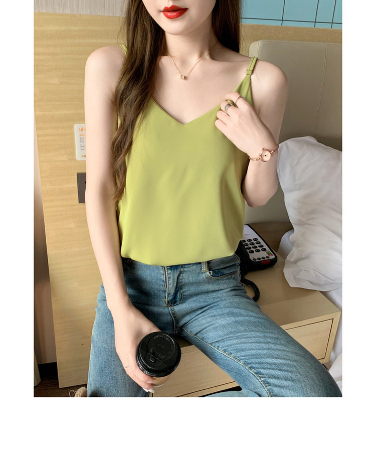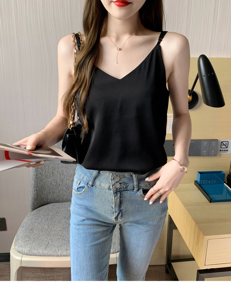 시폰 카미 솔 여자 2024 여름 V-목 조정 가능한 느슨한 외부 착용 내부 화이트 탑