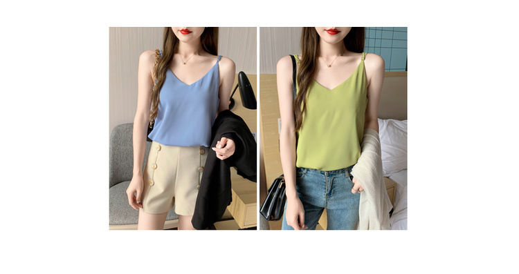 시폰 카미 솔 여자 2024 여름 V-목 조정 가능한 느슨한 외부 착용 내부 화이트 탑스토어 가기