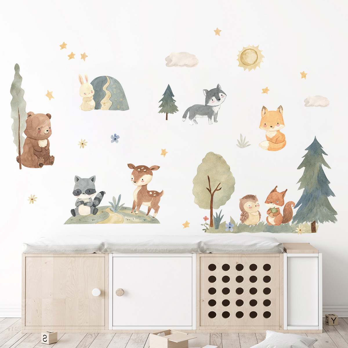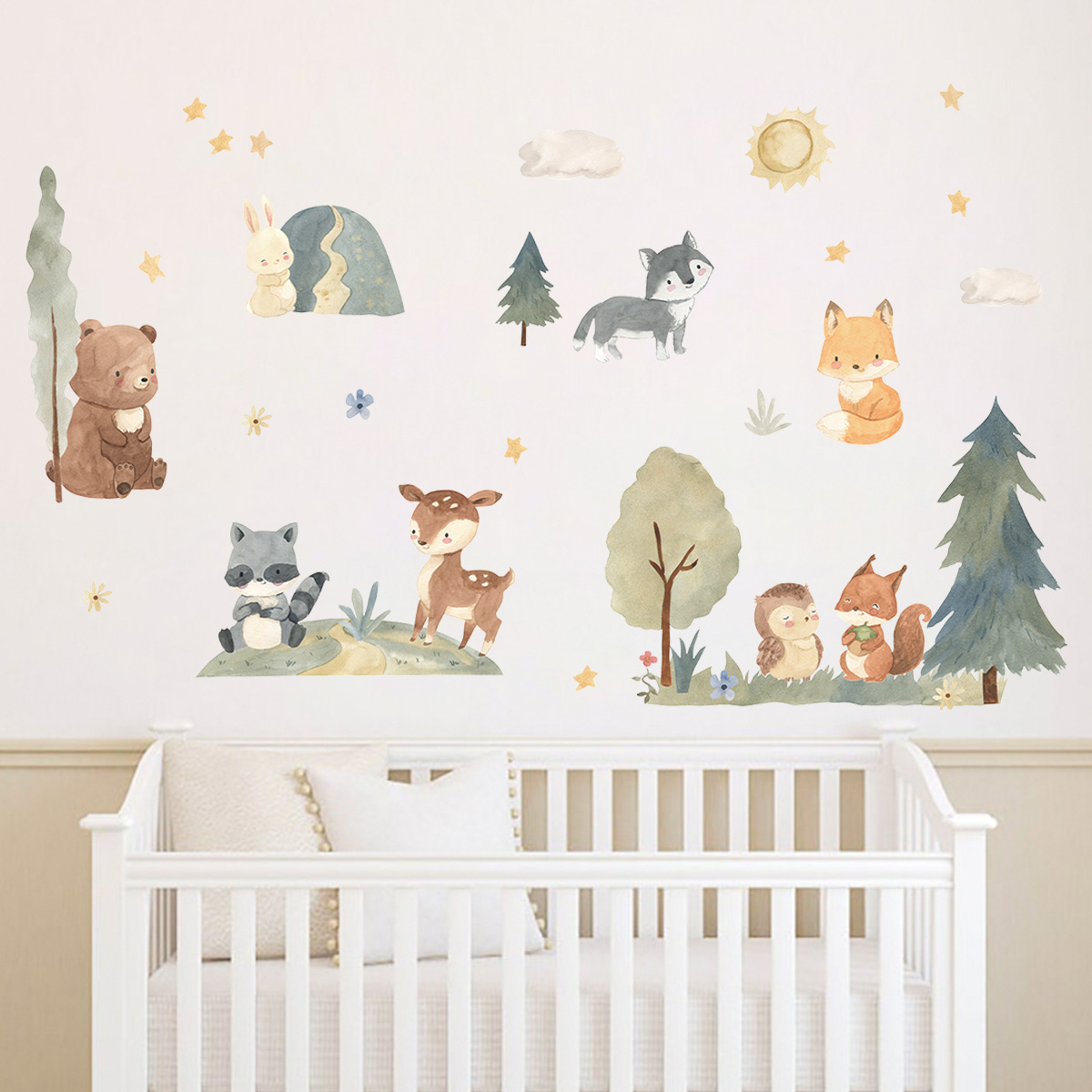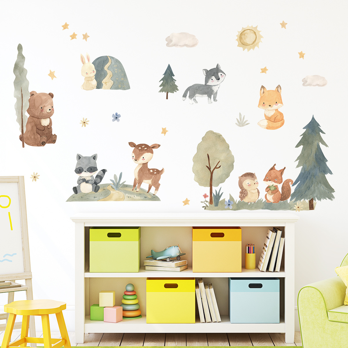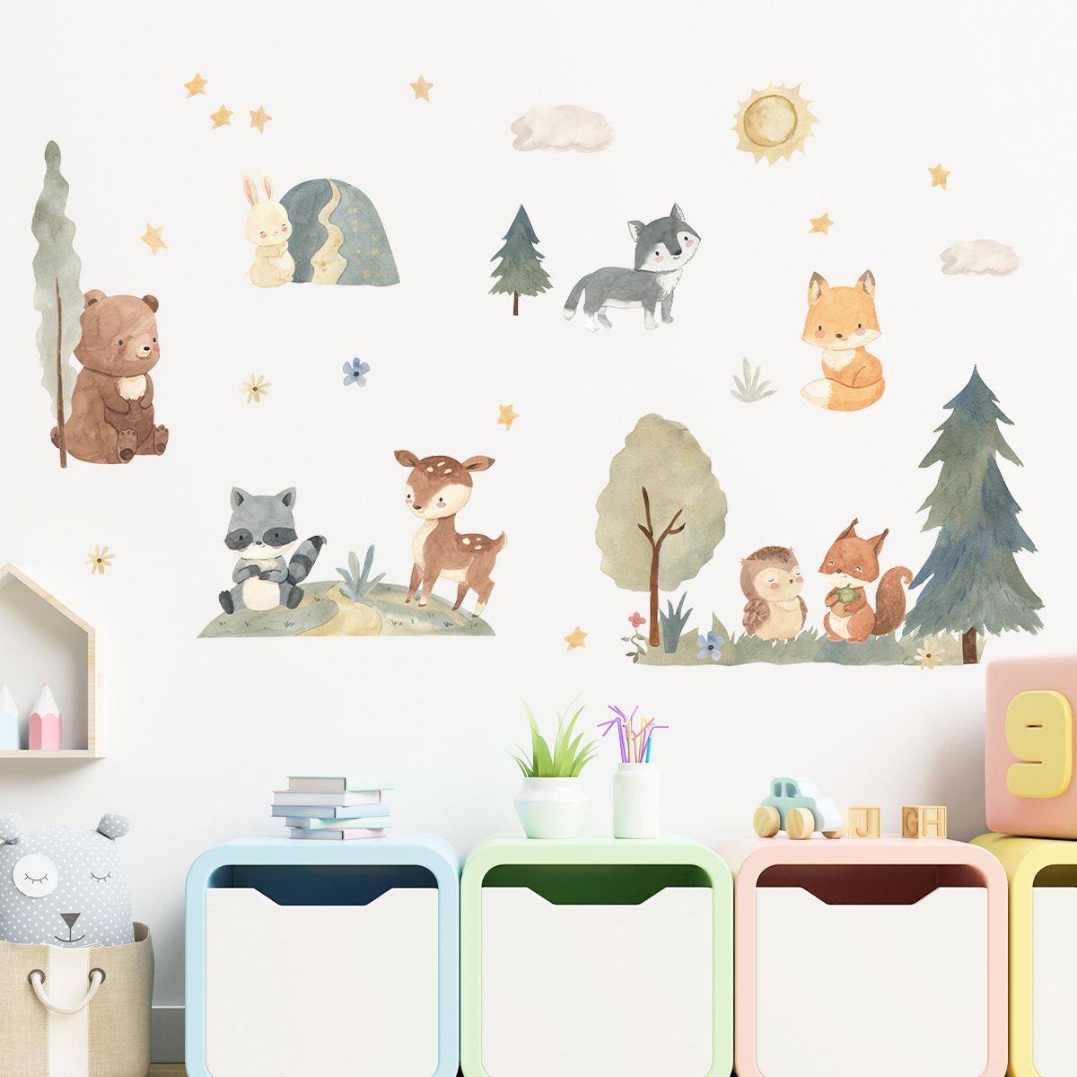 만화 숲 작은 동물 자기 접착 벽 스티커 귀여운 Ins 스타일 어린이 방 유치원 장식 스티커 BR0662M