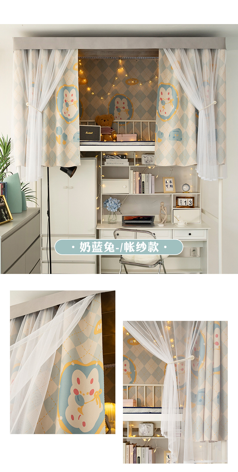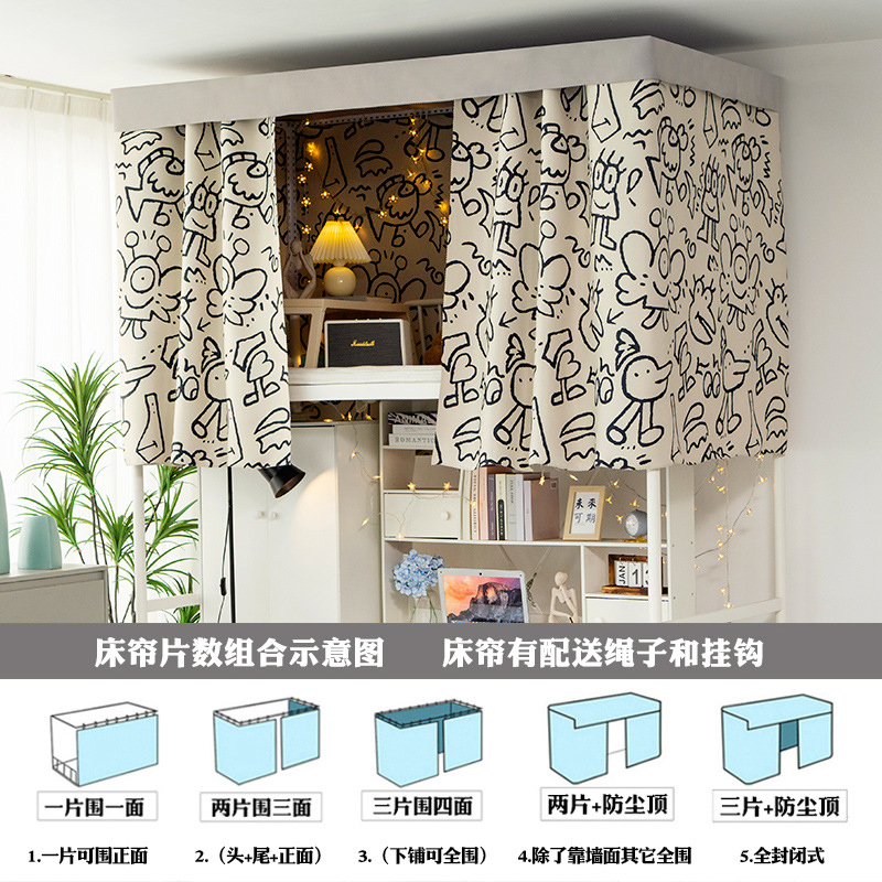 학생 기숙사 침대 커튼 두꺼운 강한 음영 커튼 대학 상부 침대 낮은 침실 소녀 커튼 그늘 옷감 침대 커튼스토어 가기