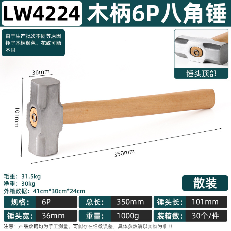 • 나무 손잡이 6P 팔각형 망치 (30/조각) 1KG