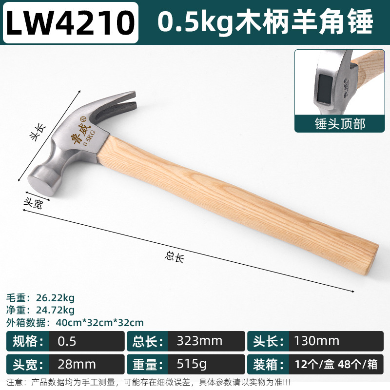 • 1LB 나무 손잡이·볼핀 해머, 각 48개, 0.45KG