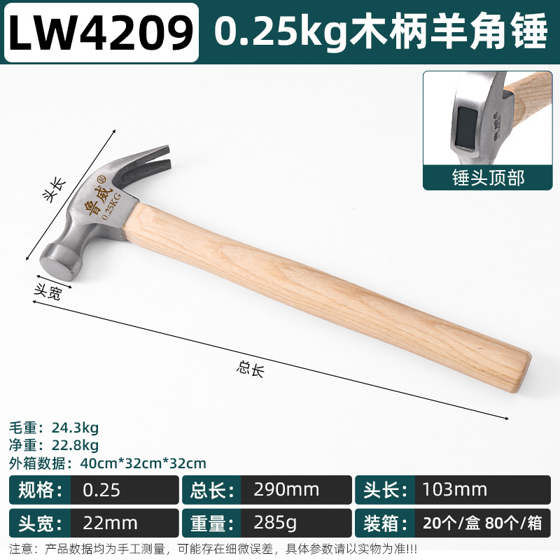 • 나무 손잡이 클로 해머 0.25KG 박스 20 박스 0) 0.32kg