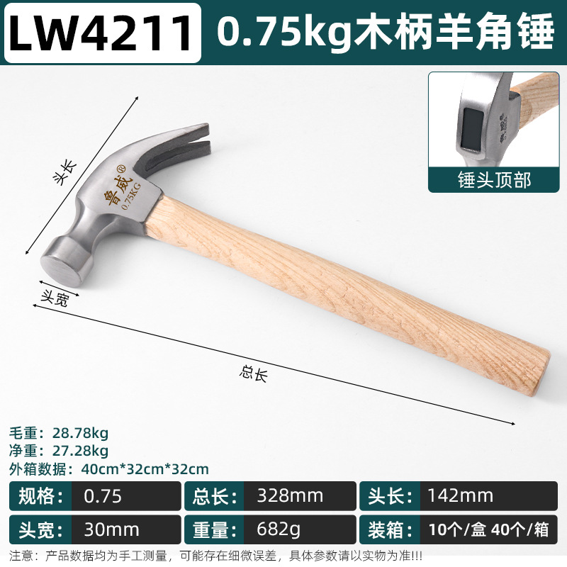Luwei 도구 나무 손잡이 해머 팔각형 해머 라운드 헤드 해머 앵글 해머 네일 리프터 네일 풀링 통합 가정용 목공 네일 해머스토어 가기