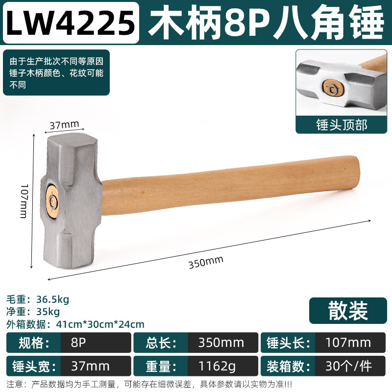 • 나무 손잡이 8P 팔각형 망치 (30/조각) 1.17KG