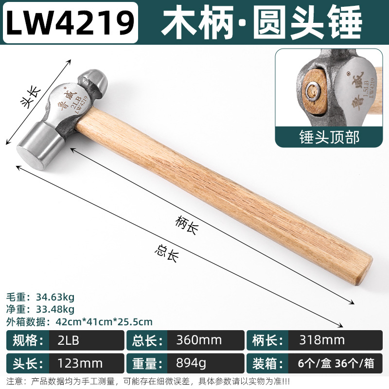 • 2LB 나무 손잡이 볼핀 해머, 각 36개, 0.9KG