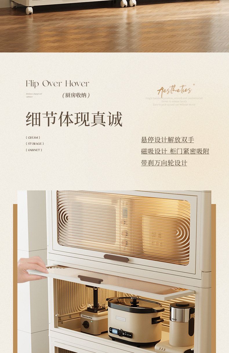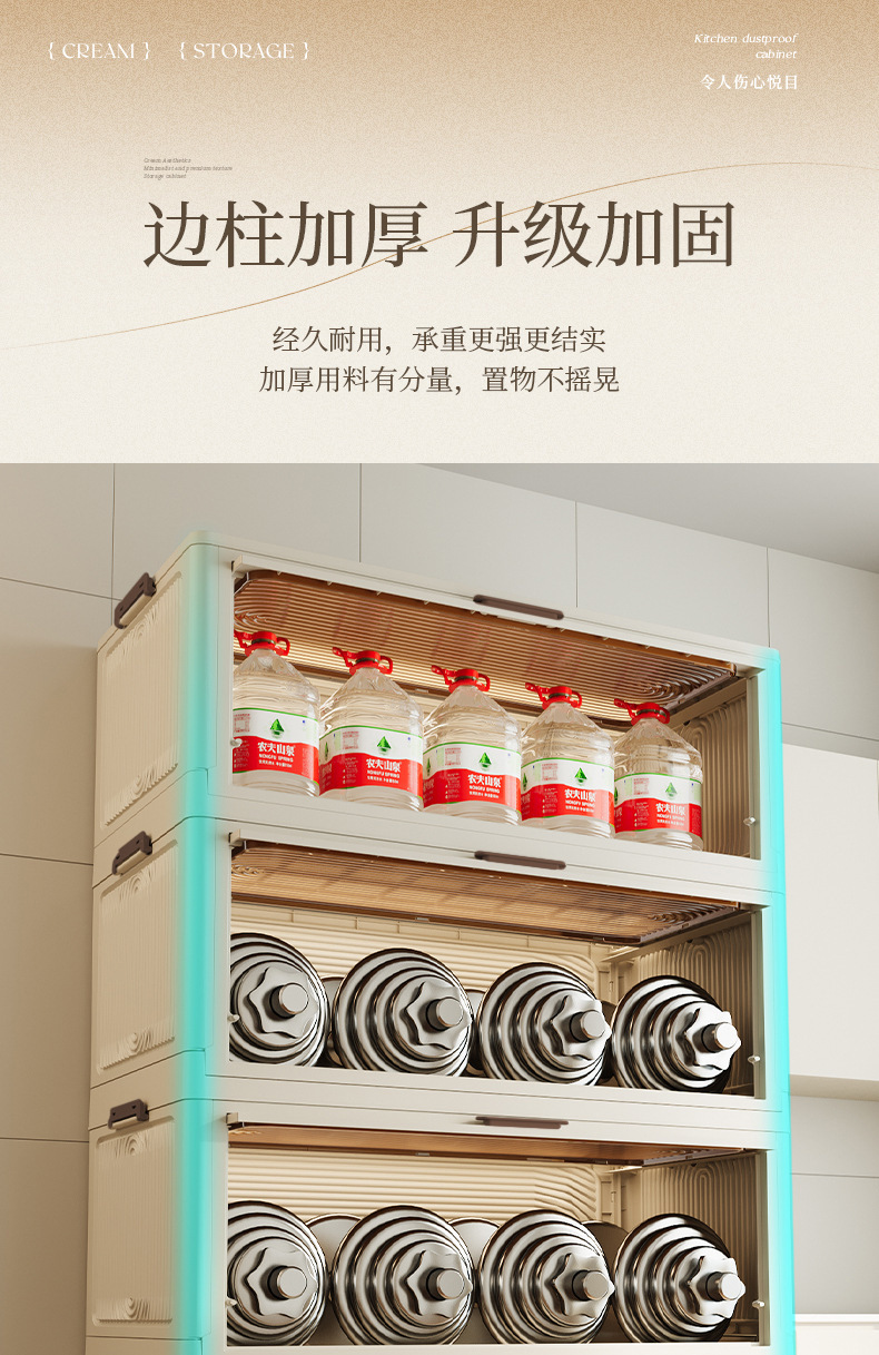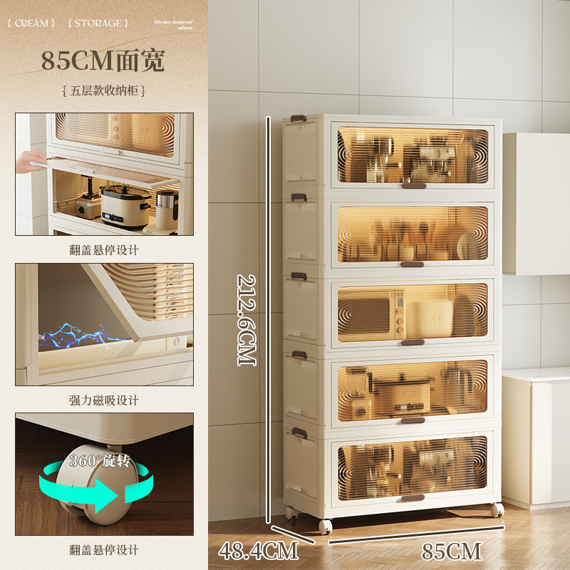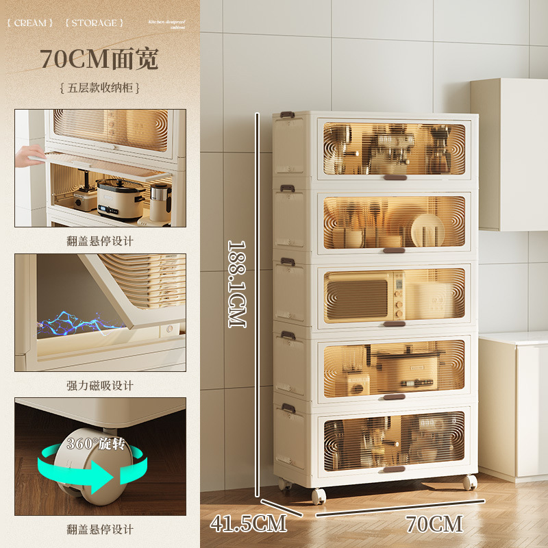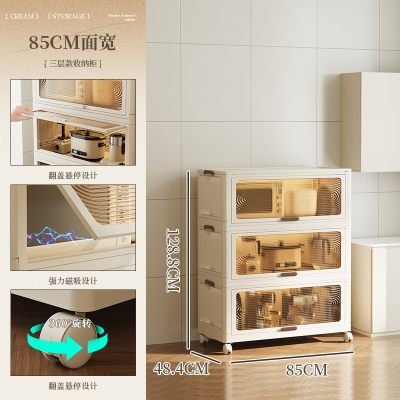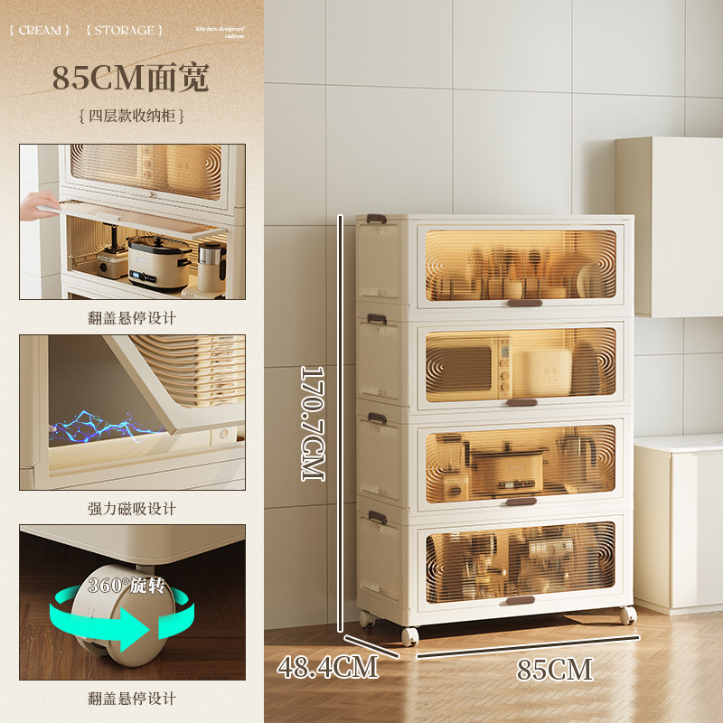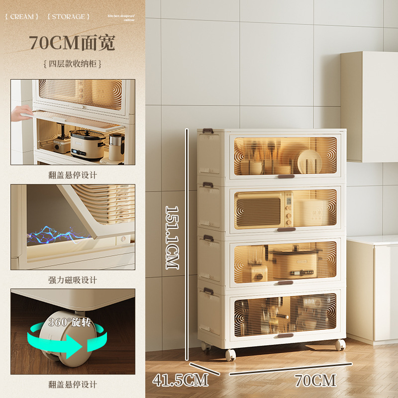 스토리지 랙 바닥 다층 주방 용품 조미료 보관 캐비닛 전자 레인지 냄비 랙 플라스틱 침실 플립 스토리지 랙