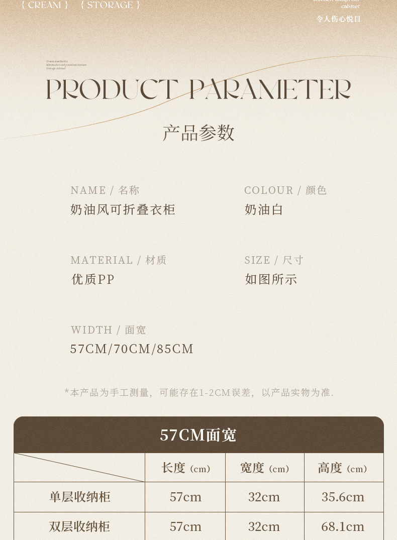 • 57 와이드 3 층 접이식 캐비닛