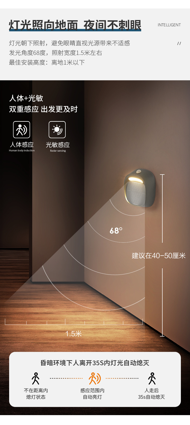 국경을 넘는 EU 인증 침실 침대 옆 야간 조명, 스마트 연결 복도 계단 화장실 센서 스마트 센서스토어 가기