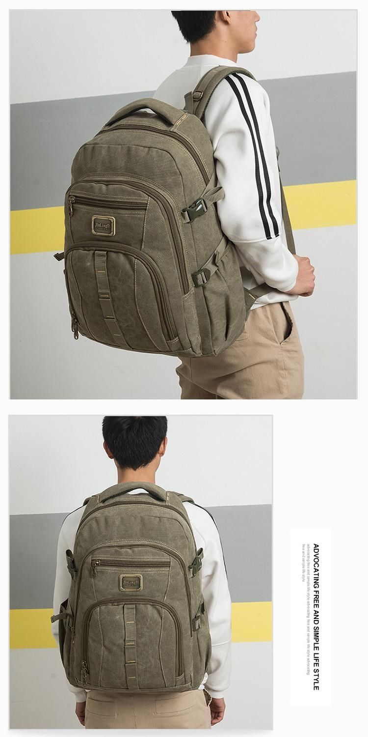 55L 두꺼운 캔버스 배낭 남성용 야외 배낭 강한 내마모성 중학생 스쿨 백 하이킹 마운틴 백스토어 가기