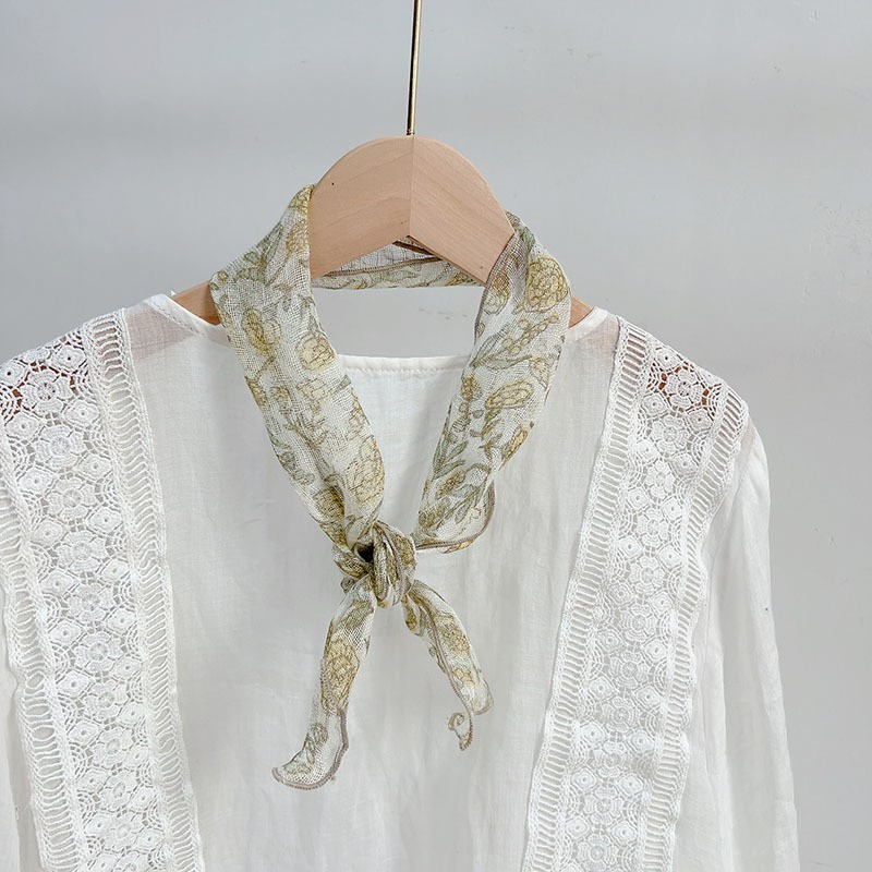 린넨 도트 작은 스카프 날씬한 헤어 벨트 예술적 모든 경기 여성의 여름 목 보호 작은 실크 스카프 가방 장식